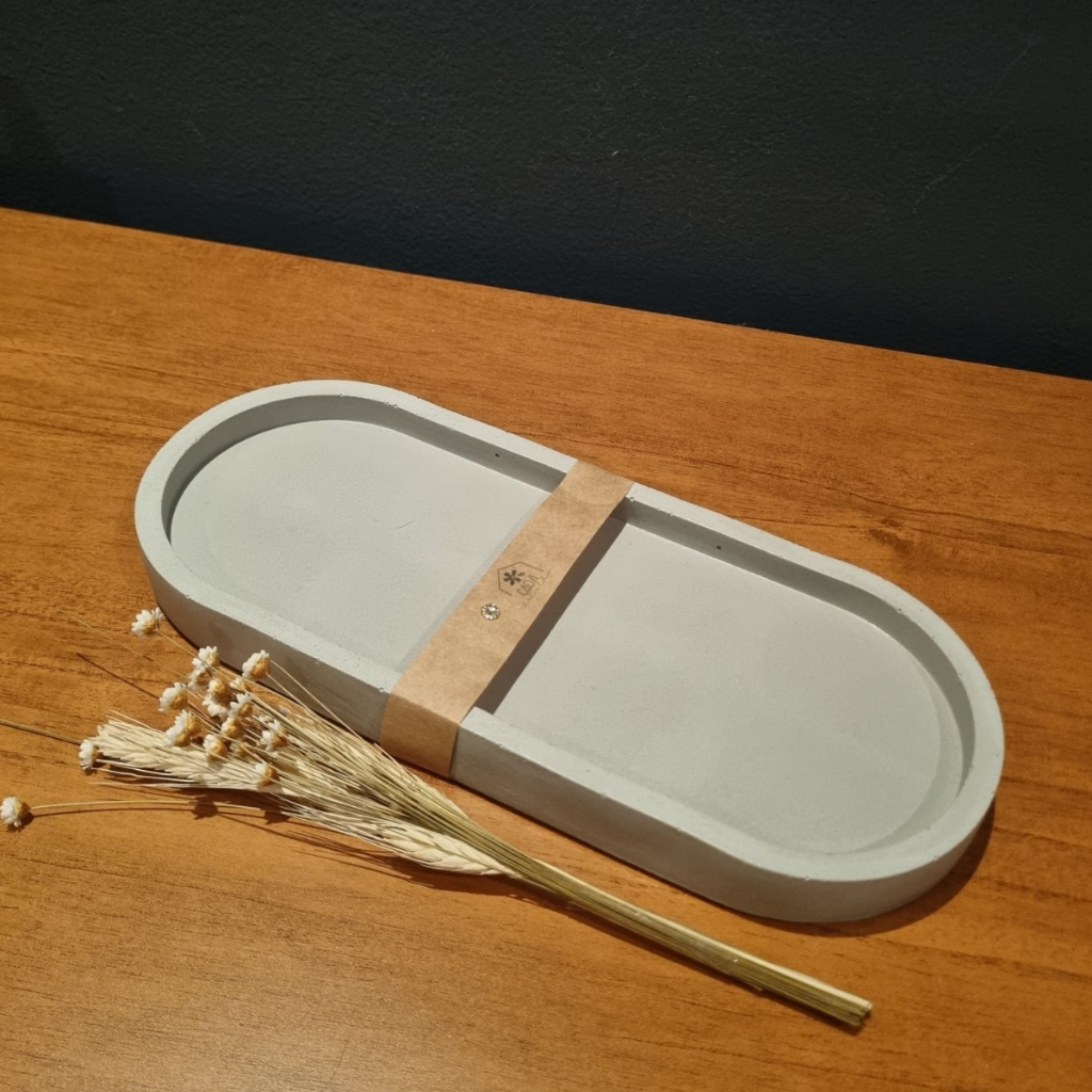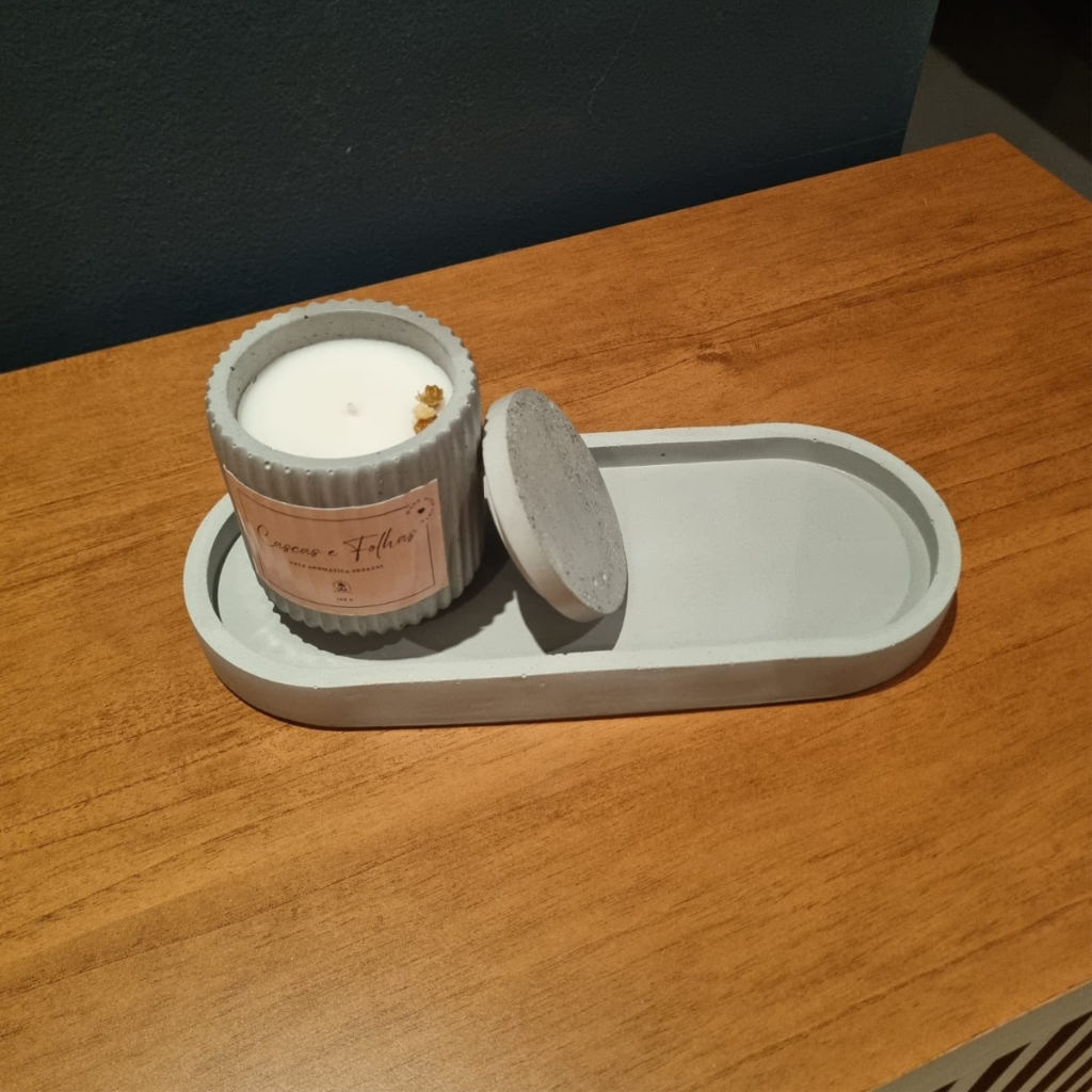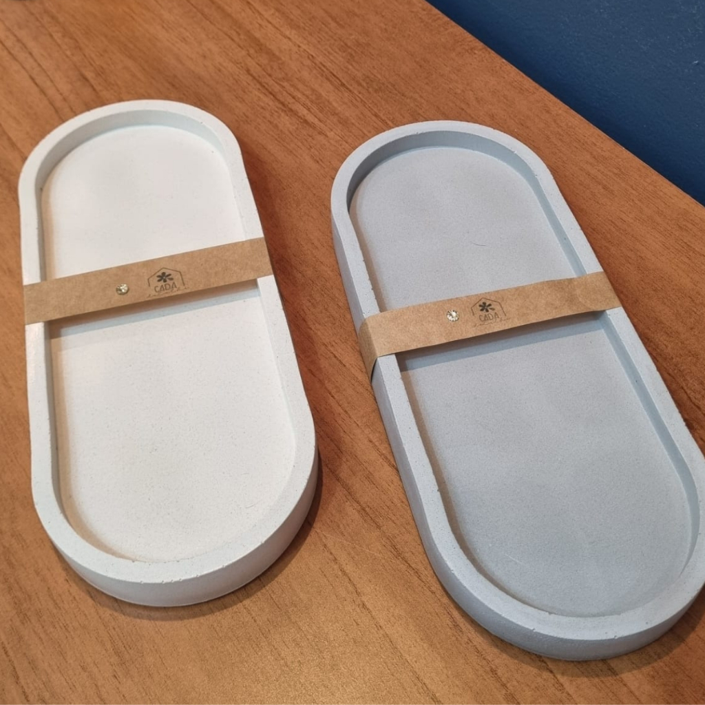 Bandeja Decorativa de Concreto Artesanal Oval Porta Velas Porta Objetos Grande
