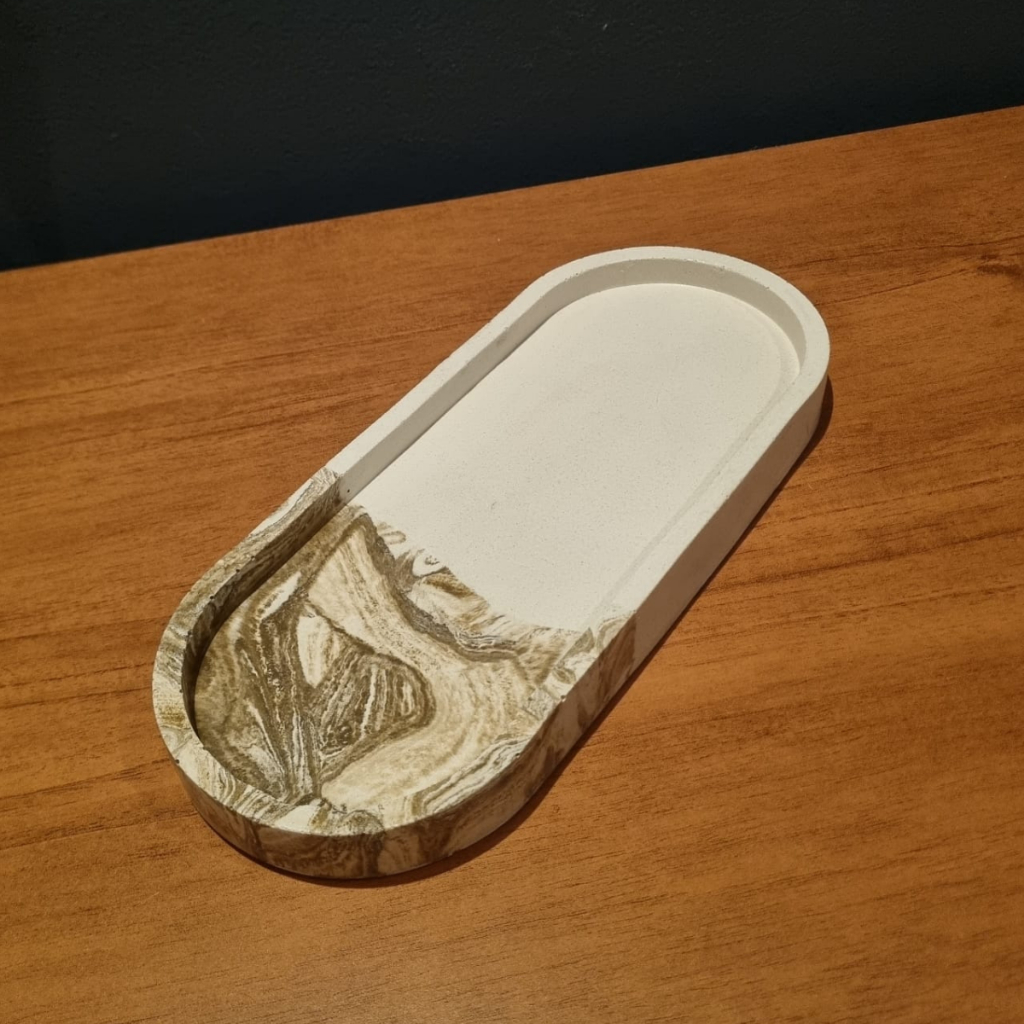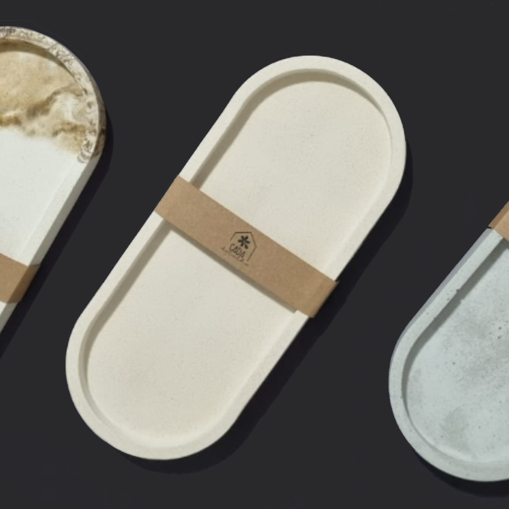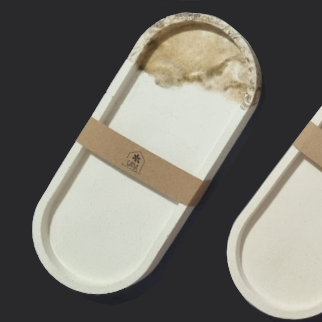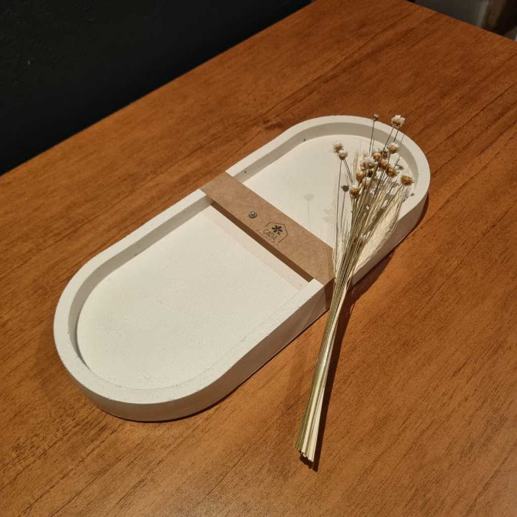 Bandeja Decorativa de Concreto Artesanal Oval Porta Velas Porta Objetos Grande