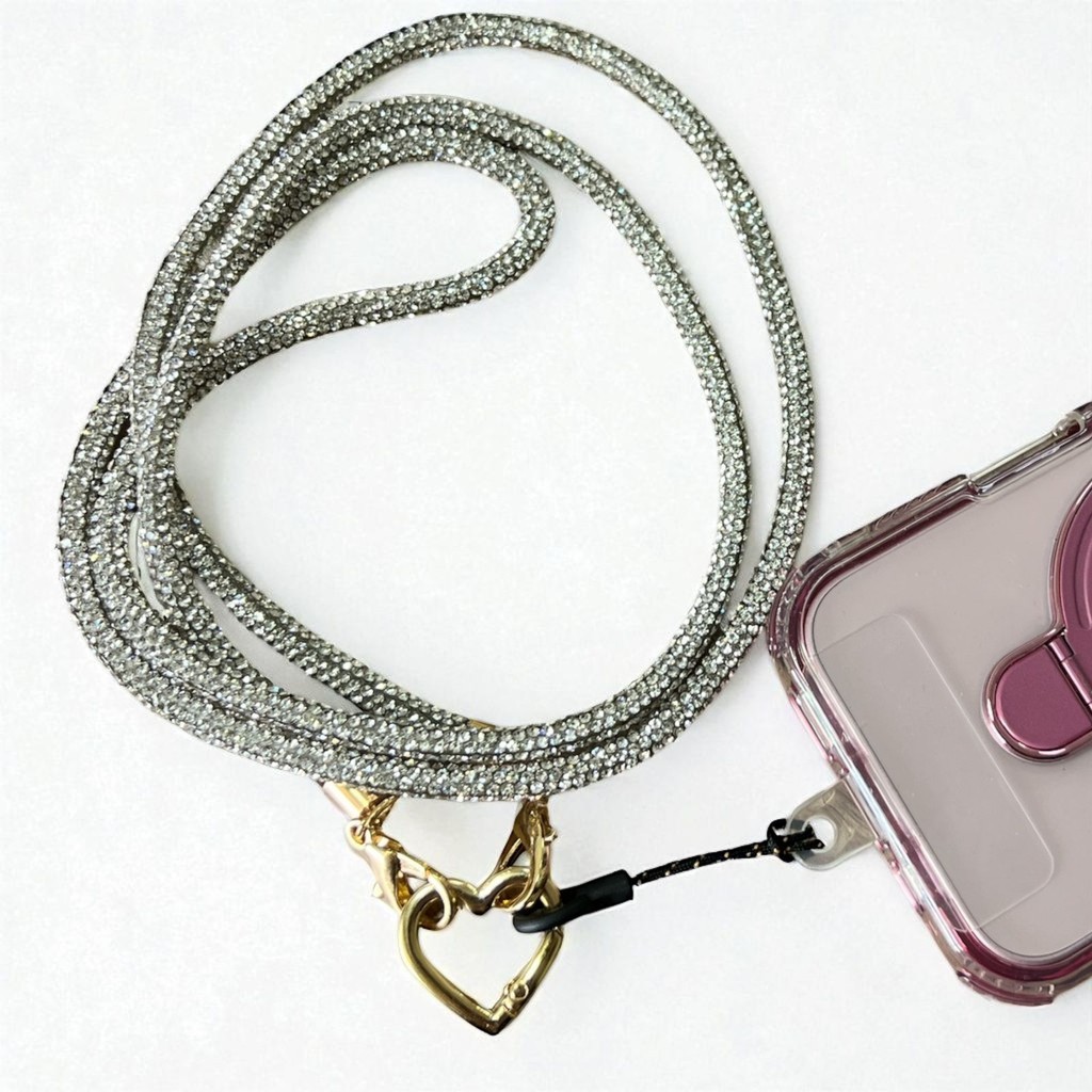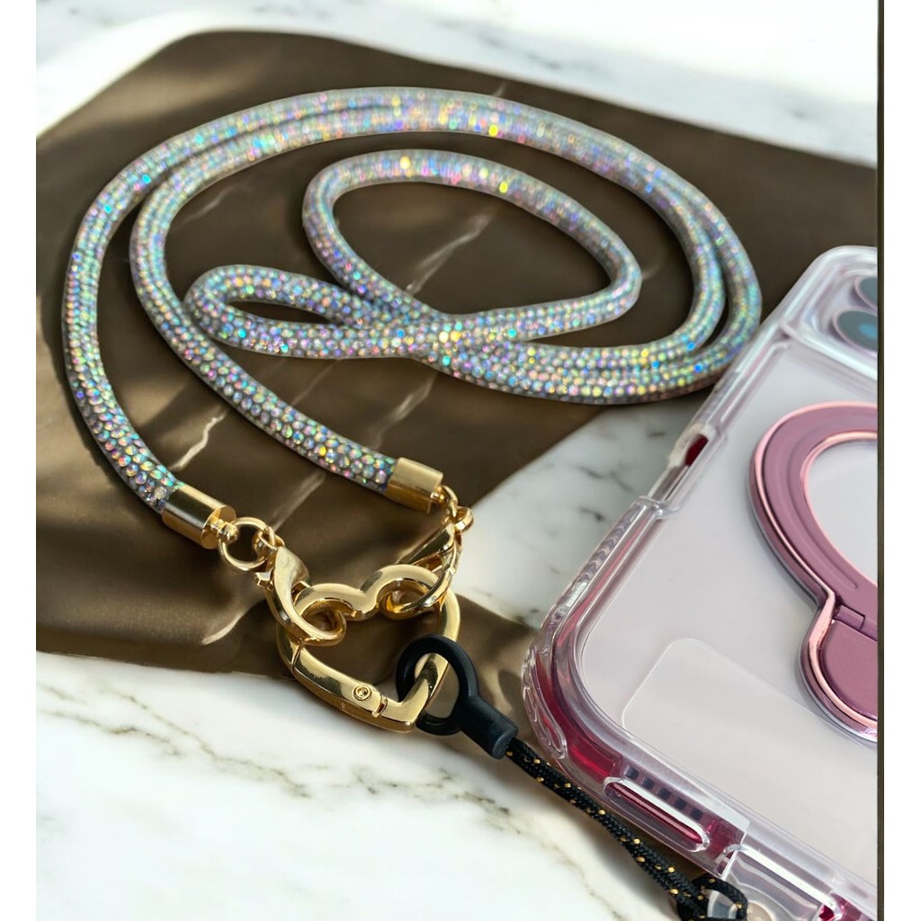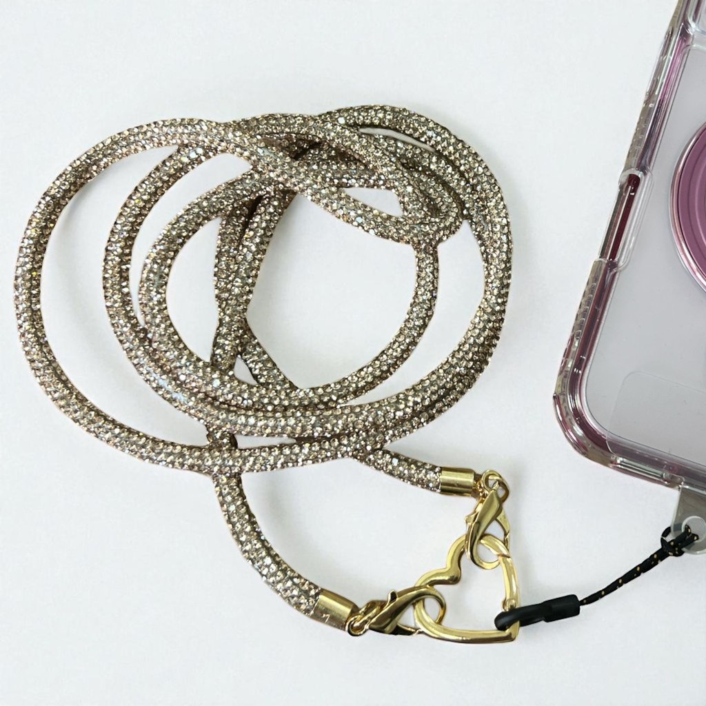 Cordão de Celular de Luxo com Strass | Alça com Coração Dourado Detalhes Premium !