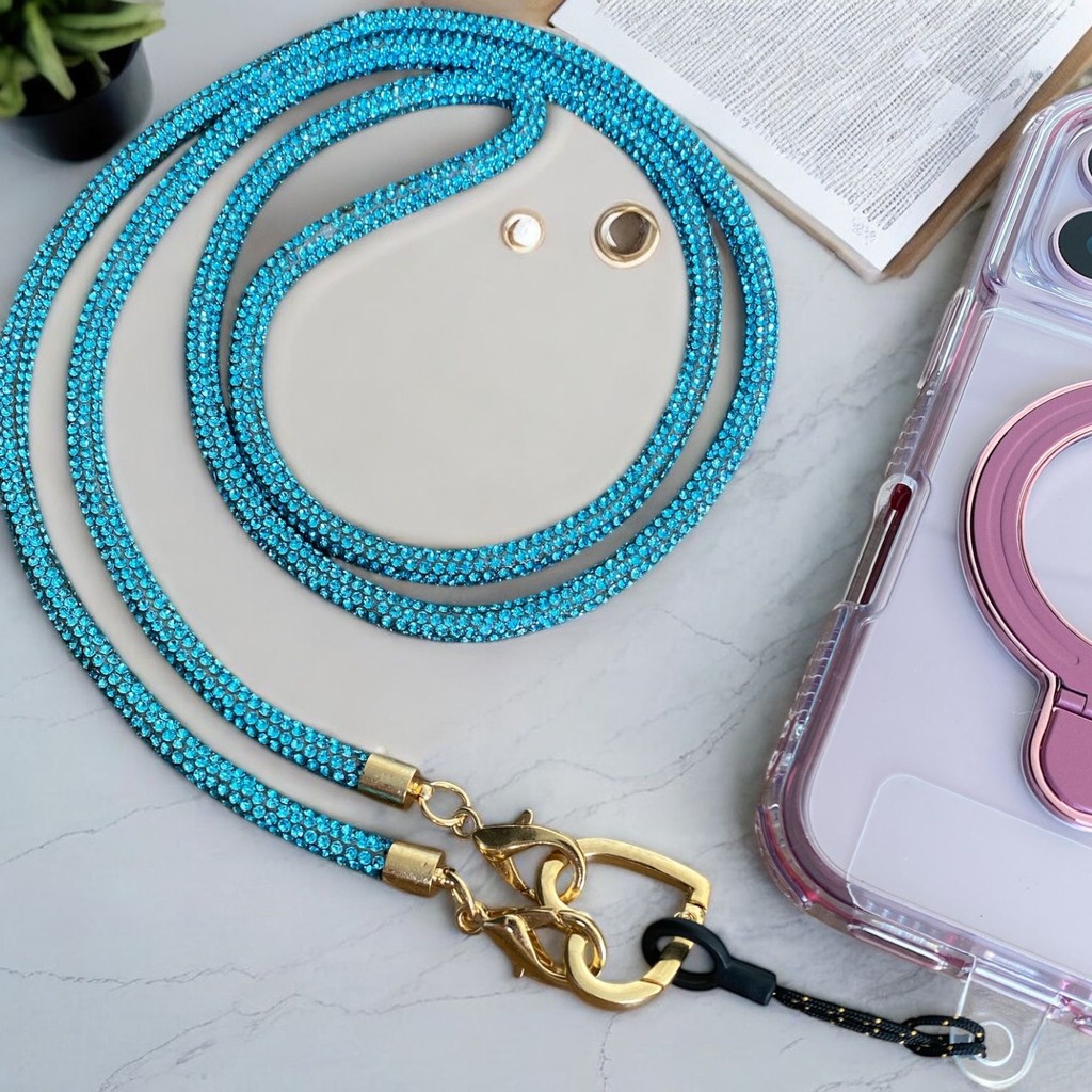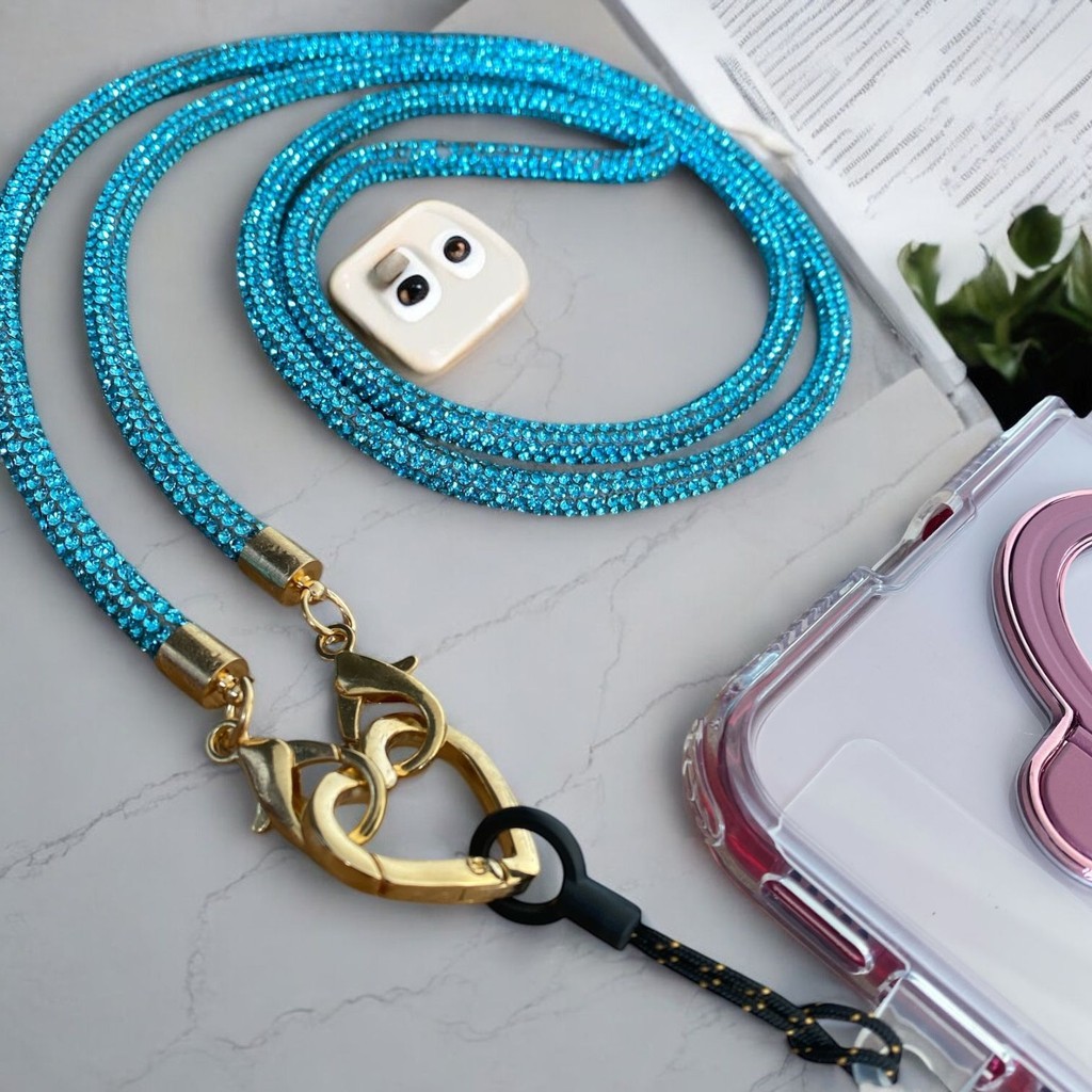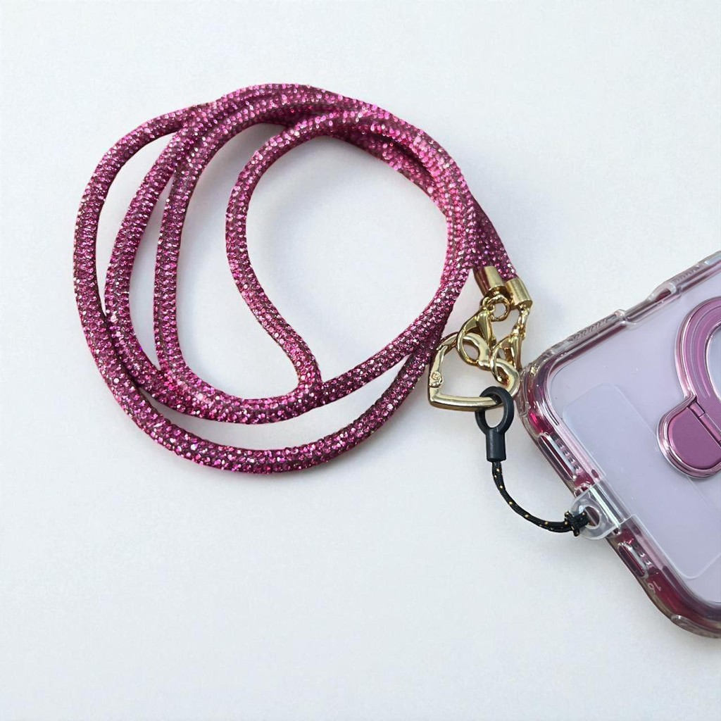 Cordão de Celular de Luxo com Strass | Alça com Coração Dourado Detalhes Premium !