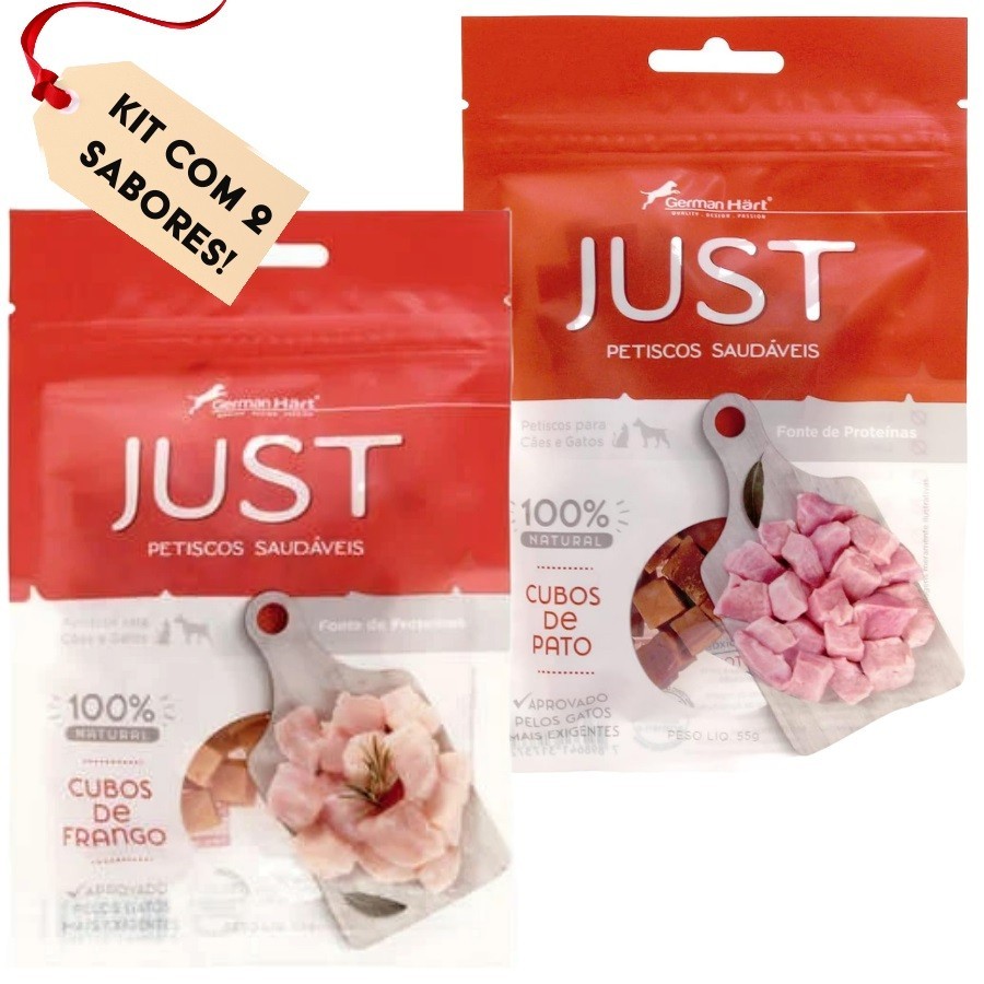 KIT PETISCO SAUDAVEL JUST CUBOS DE PATO E FRANCO NATURAL CÃES E GATOS