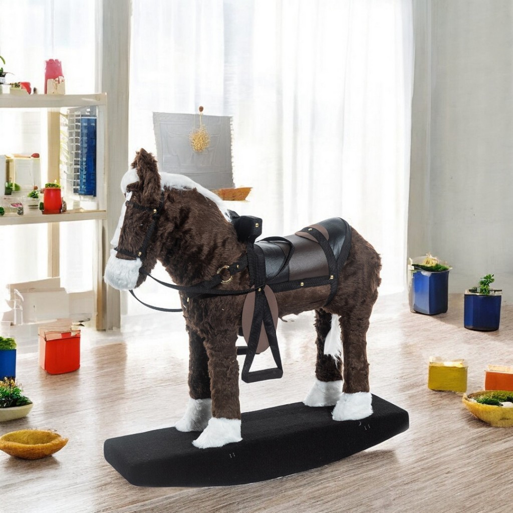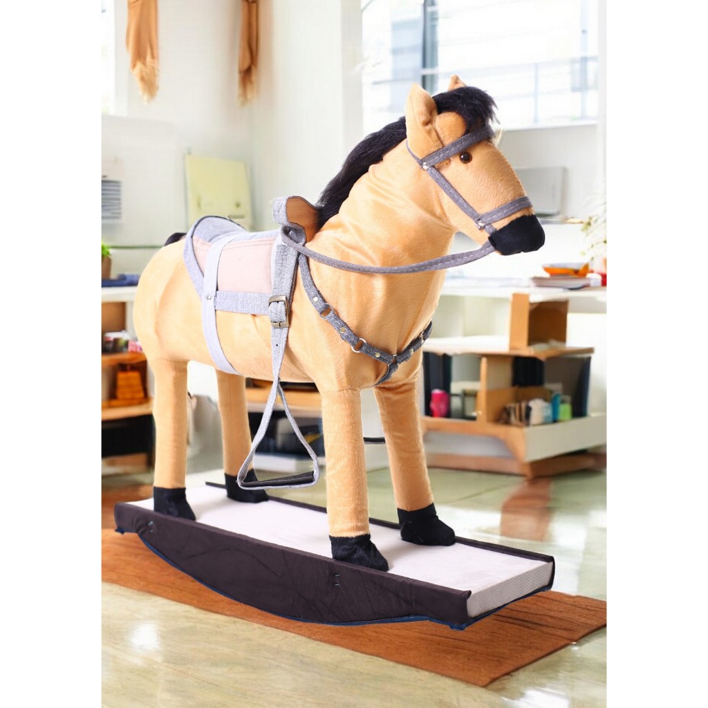 Cavalinho de Balanço em Madeira Com Pelúcia Regulagem na Sela Para Ate 6 Anos para Crianca