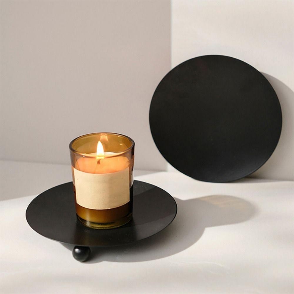 Suporte De Vela De Ferro JEREMY1 , Placa De Metal De Pilar Preto Redondo , Castiçal Decorativo Dourado Para Festival