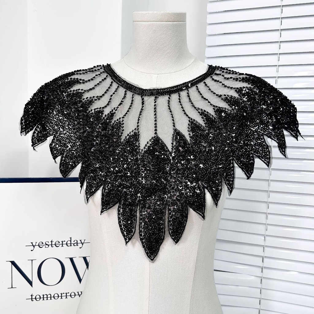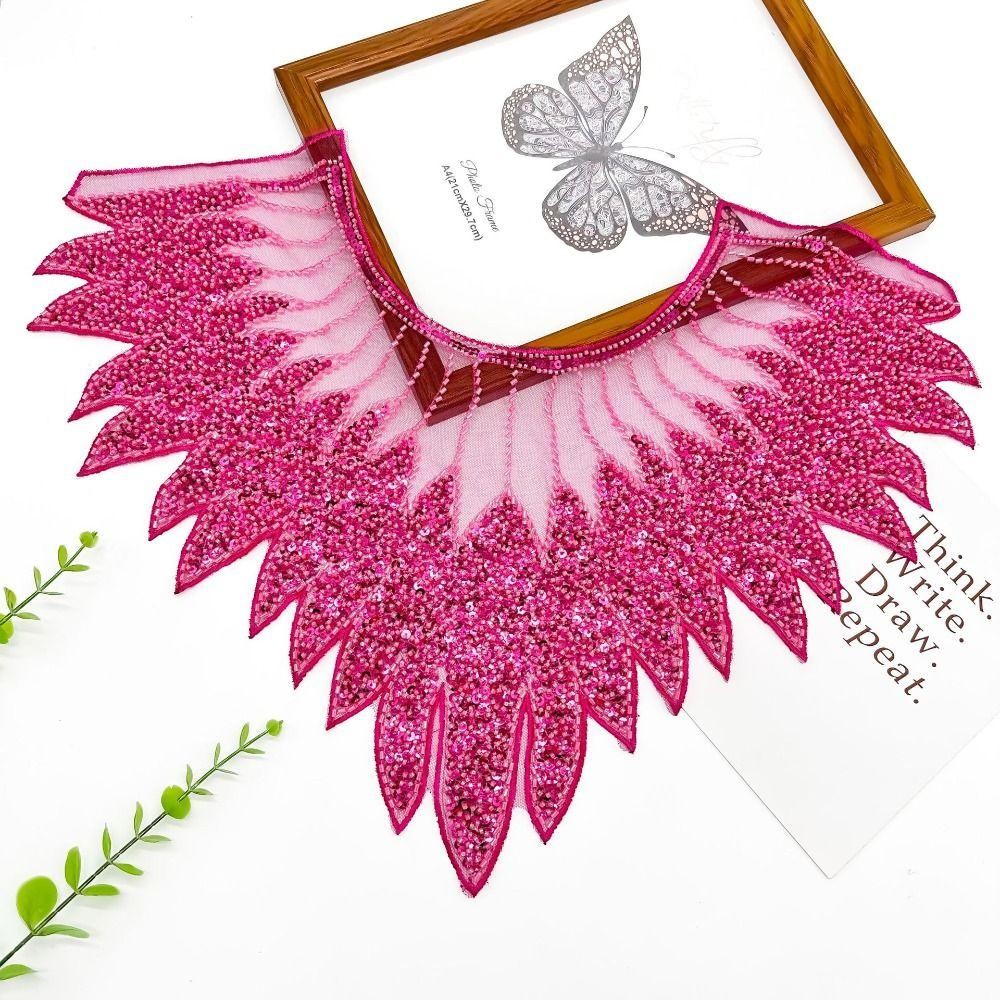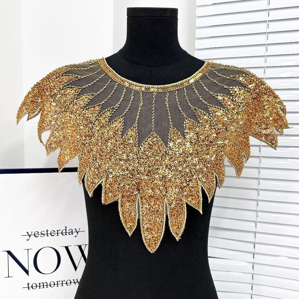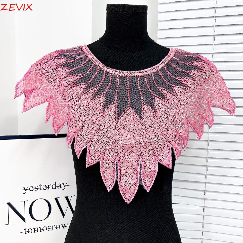 ZEVIX Gola De Renda Com Lantejoulas , Aplique De Contas , Decote Requintado , Remendo De Artesanal DIY Brilhante