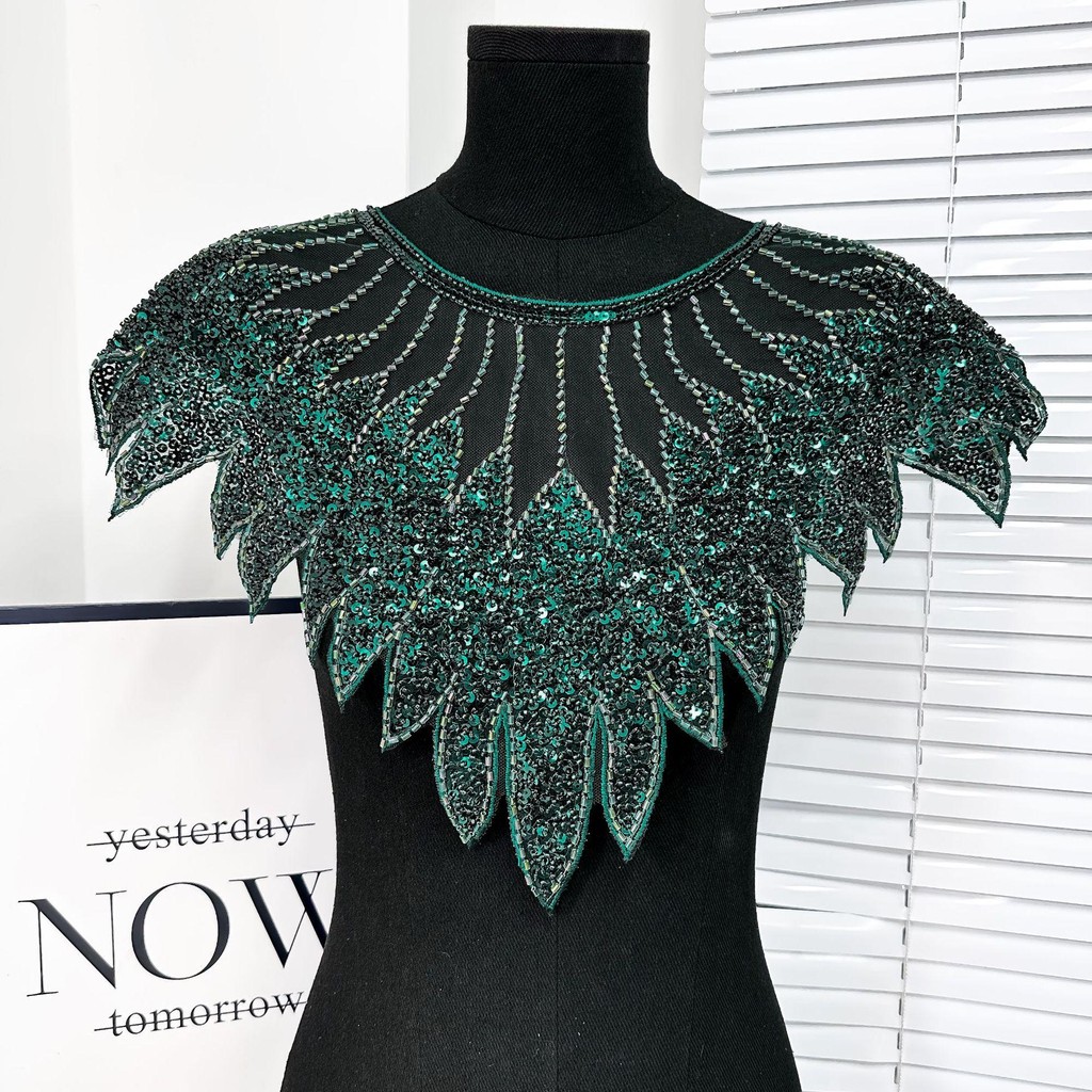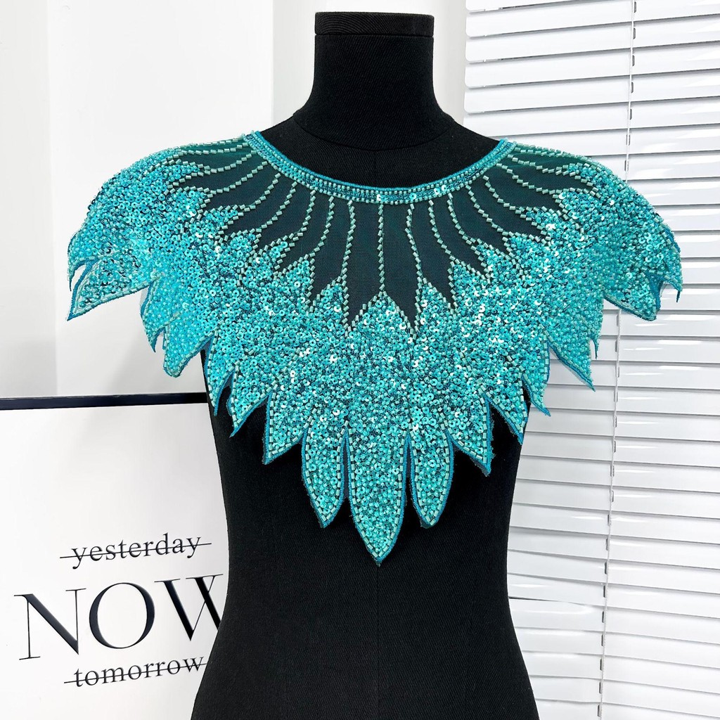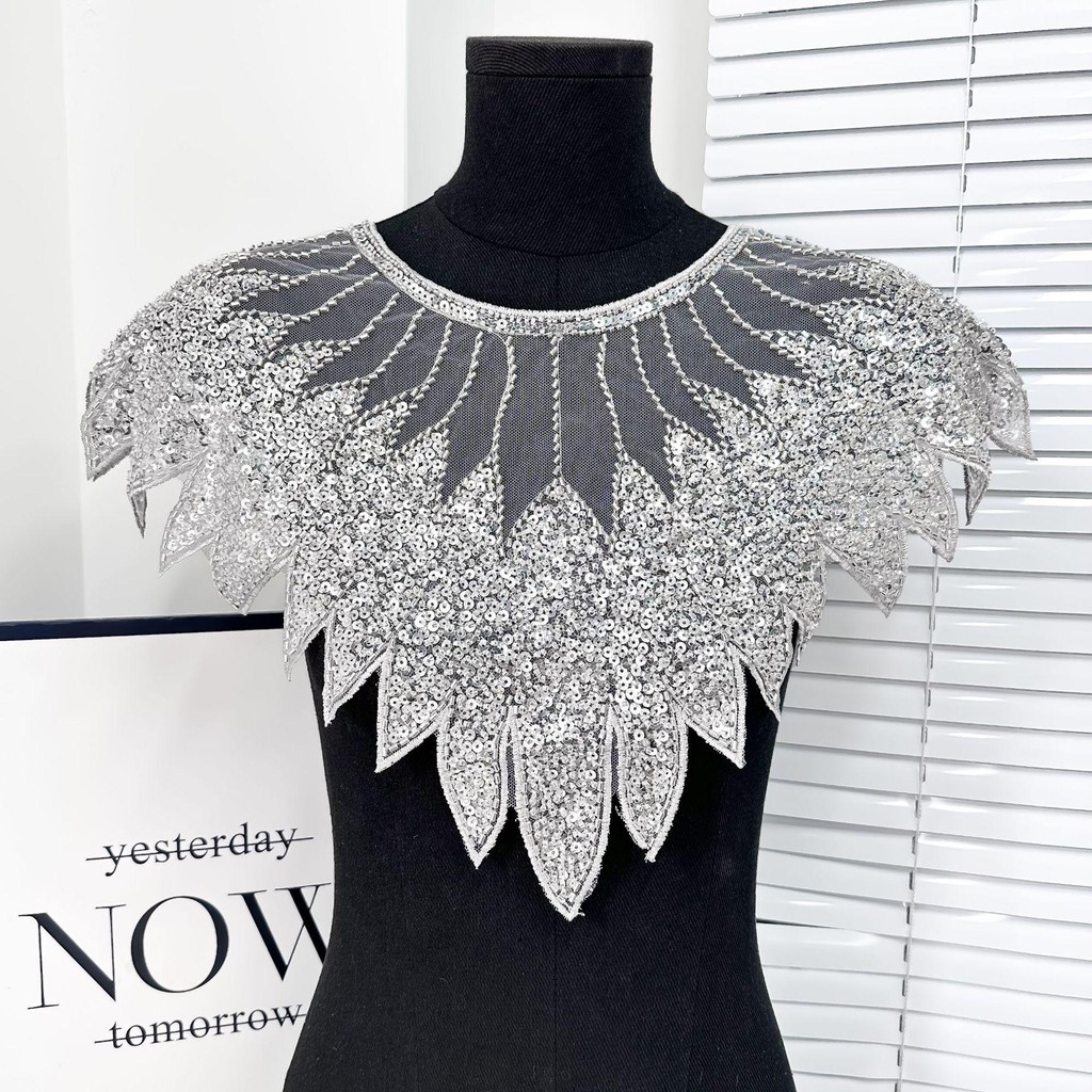 ZEVIX Gola De Renda Com Lantejoulas , Aplique De Contas , Decote Requintado , Remendo De Artesanal DIY Brilhante