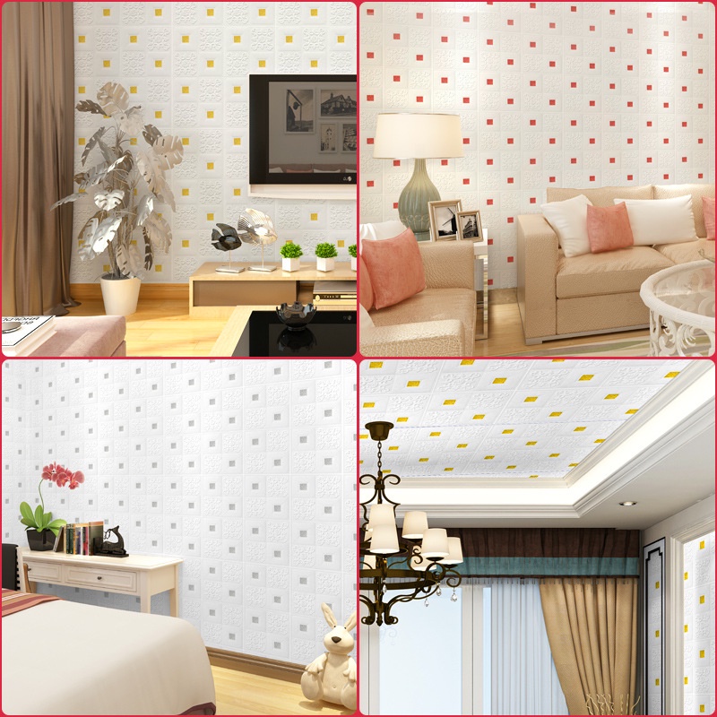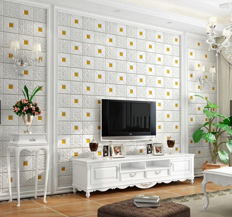 Papel De Parede 3D 10pcs Adesivo De Espuma À Prova D'água Decoração Da Sala De Casa 35x35cm Adesivos De Embalagem Flexíveis mural