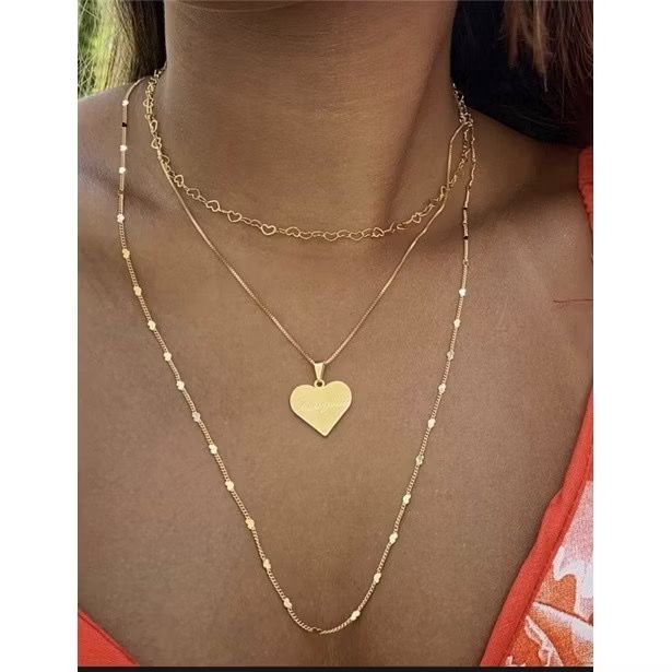 Colar Feminino longo 60cm Mini Coração folheado Moda Mulher Pra Presente BJ 57