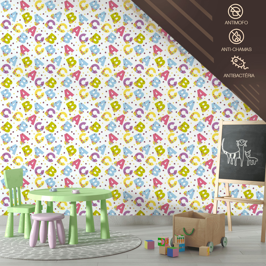Papel de Parede Vinílico Letra Alfabeto ABC Colorido Adesivo Resistente