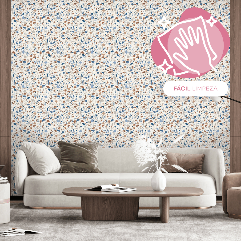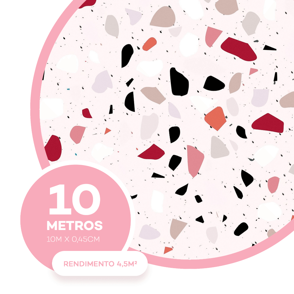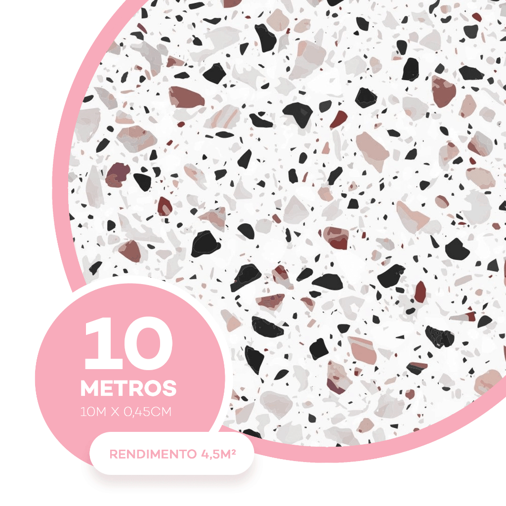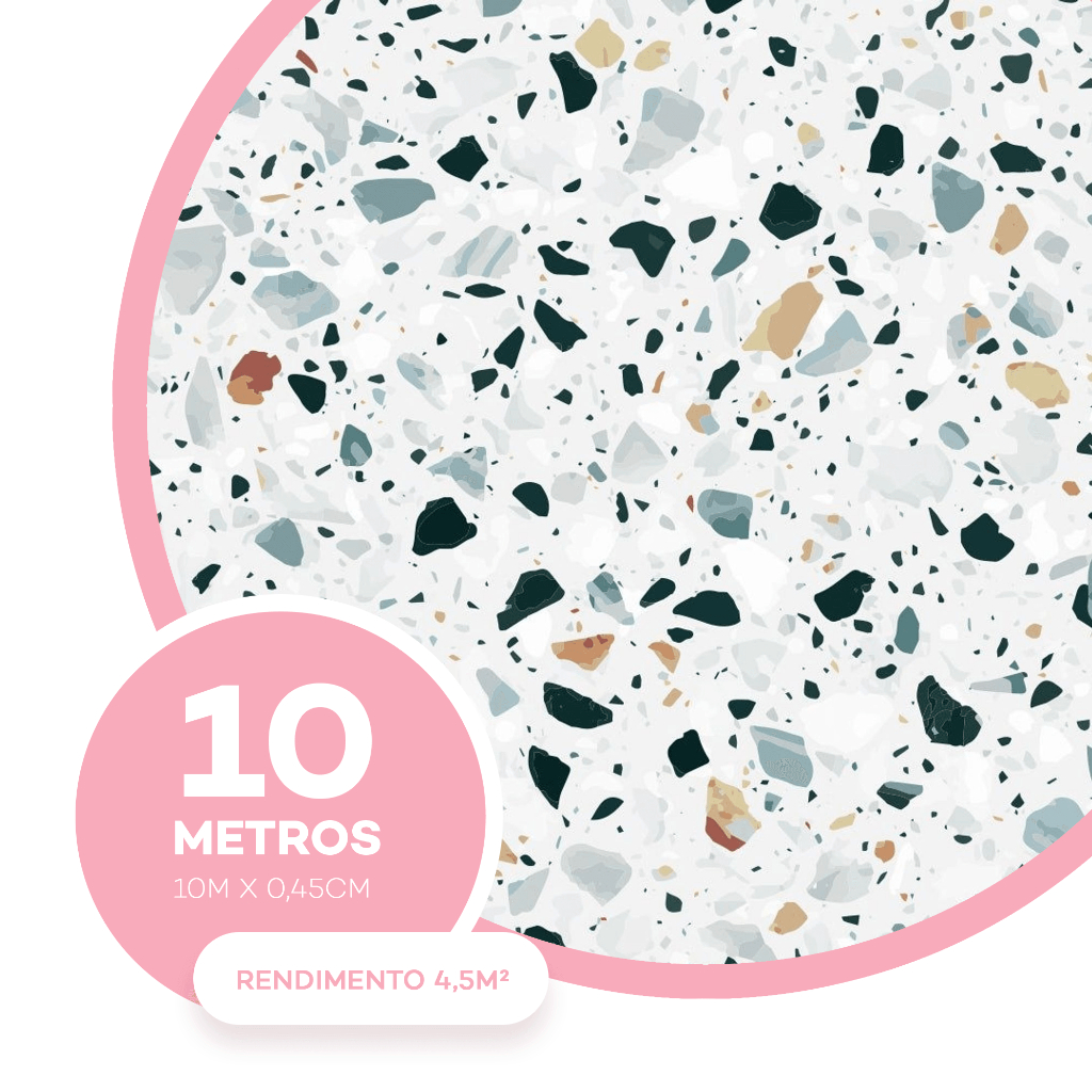 Papel de Parede Autoadesivo Pedra Granilite Terrazo Banheiro Lavabo Cozinha Decoração 10m x 47cm