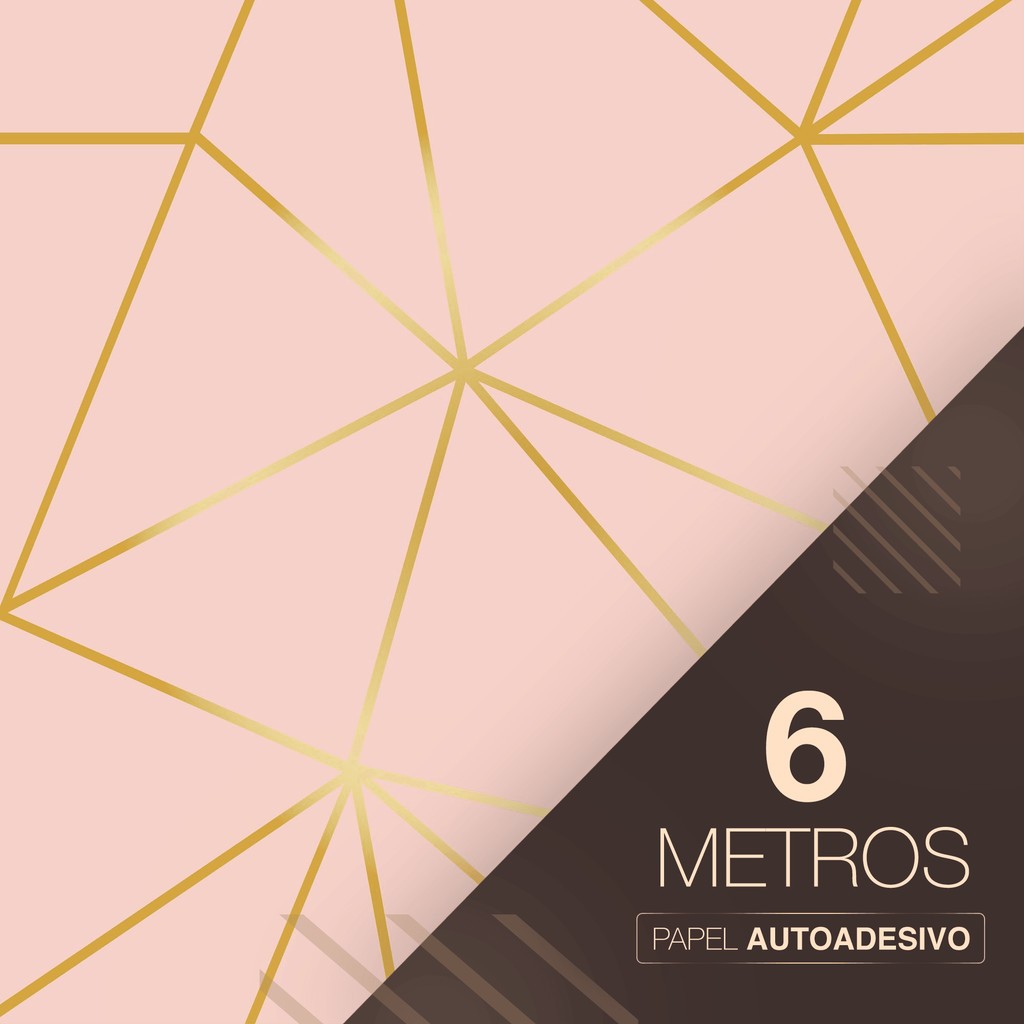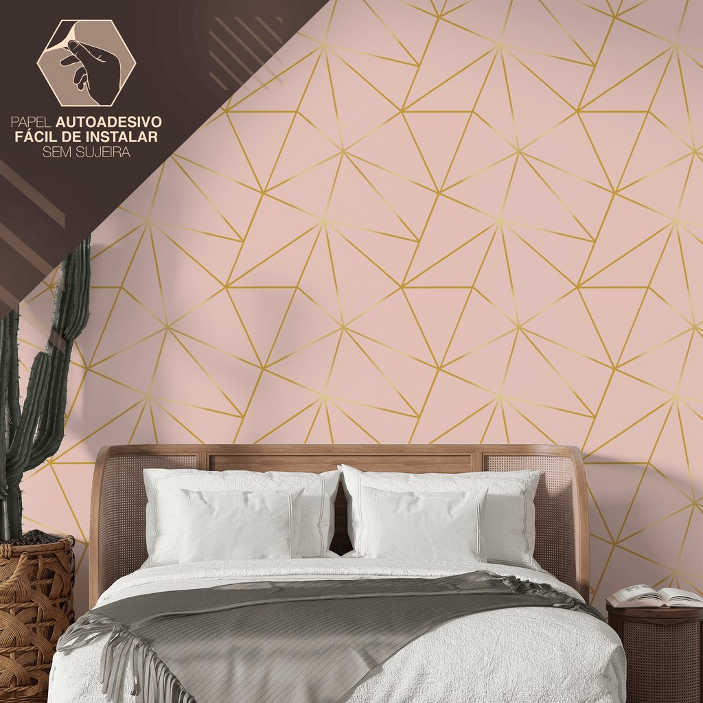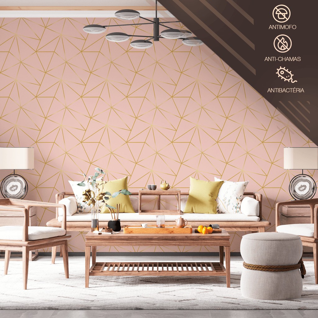 Papel de Parede Vinílico Rosa Triângulos Dourados Adesivo Resistente