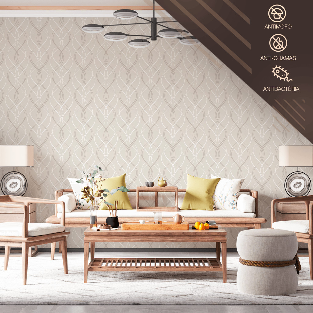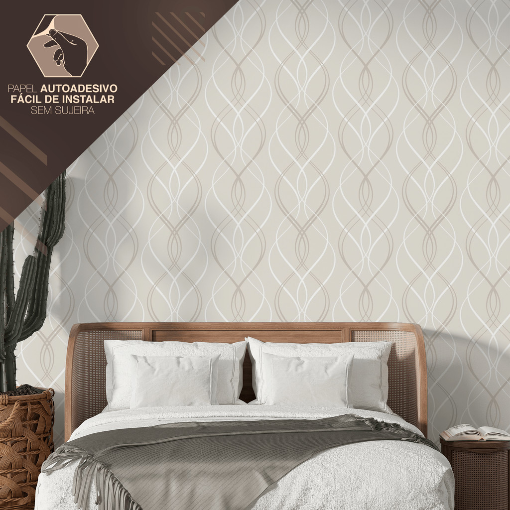 Papel de Parede Vinílico Linhas Entrelaçadas Bege Adesivo Resistente