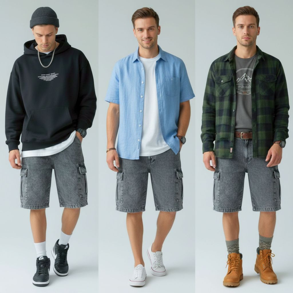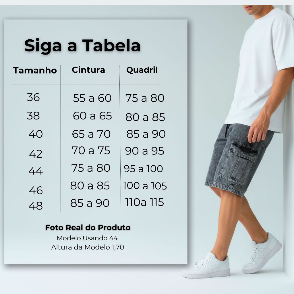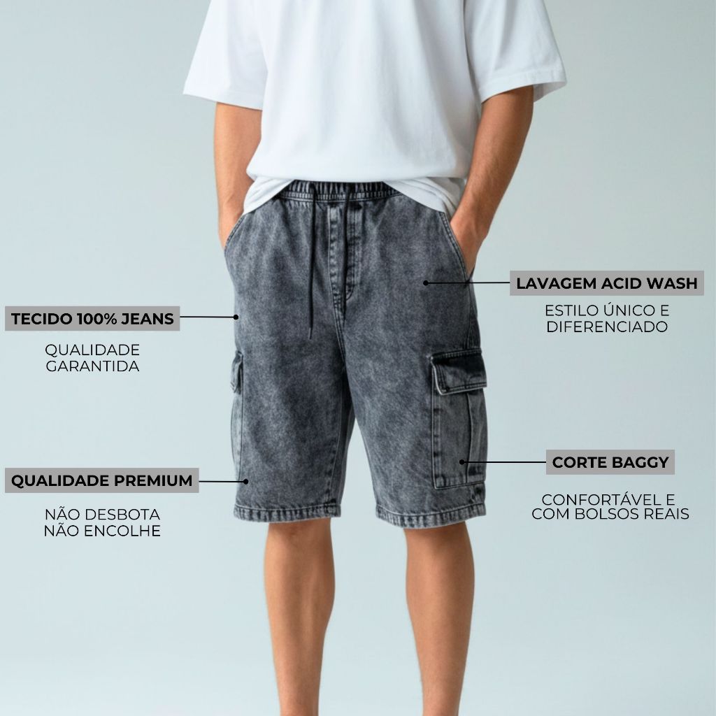Bermuda Masculina 100% Jeans Streetwear Larga Grafite P ao GG