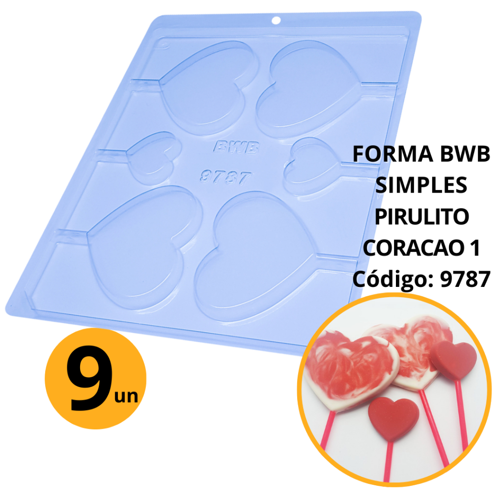 1~10 FORMA SIMPLES PIRULITO CORAÇÃO CÓD.:9787 - (D6) EM ACETATO BWB PARA BOMBOM, DOCES DE CHOCOLATE E CONFEITARIA..