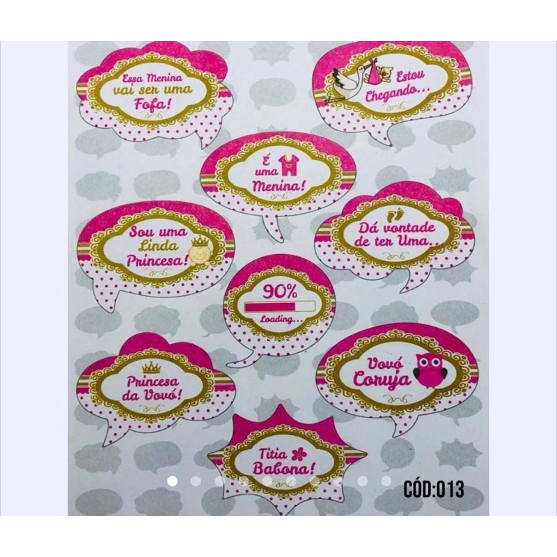 KIT 10 PLAQUINHAS DIVERTIDAS SELFIE CHÁ DE BEBÊ MENINA (COD 13)