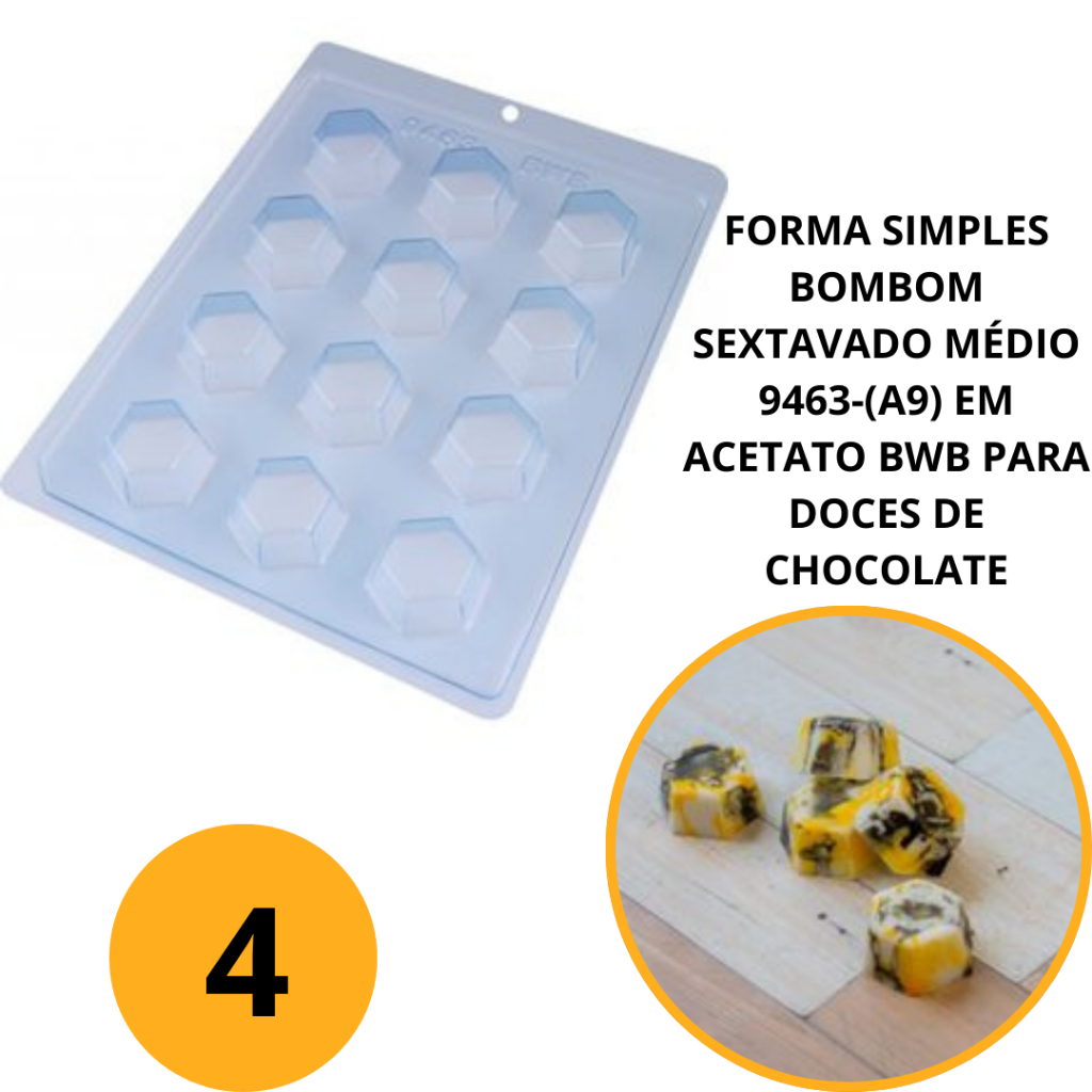 1~6 FORMA SIMPLES BOMBOM SEXTAVADO MÉDIO 9463-(A9) EM ACETATO BWB PARA DOCES DE CHOCOLATE