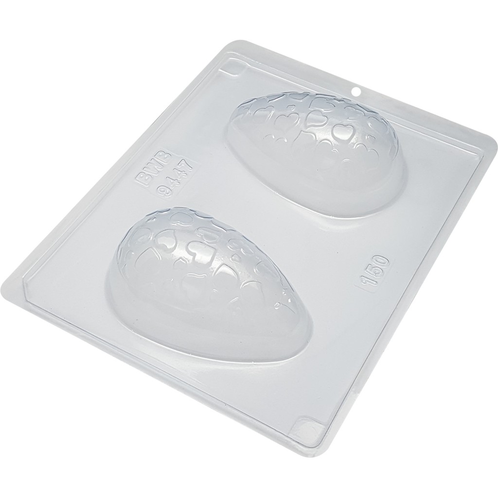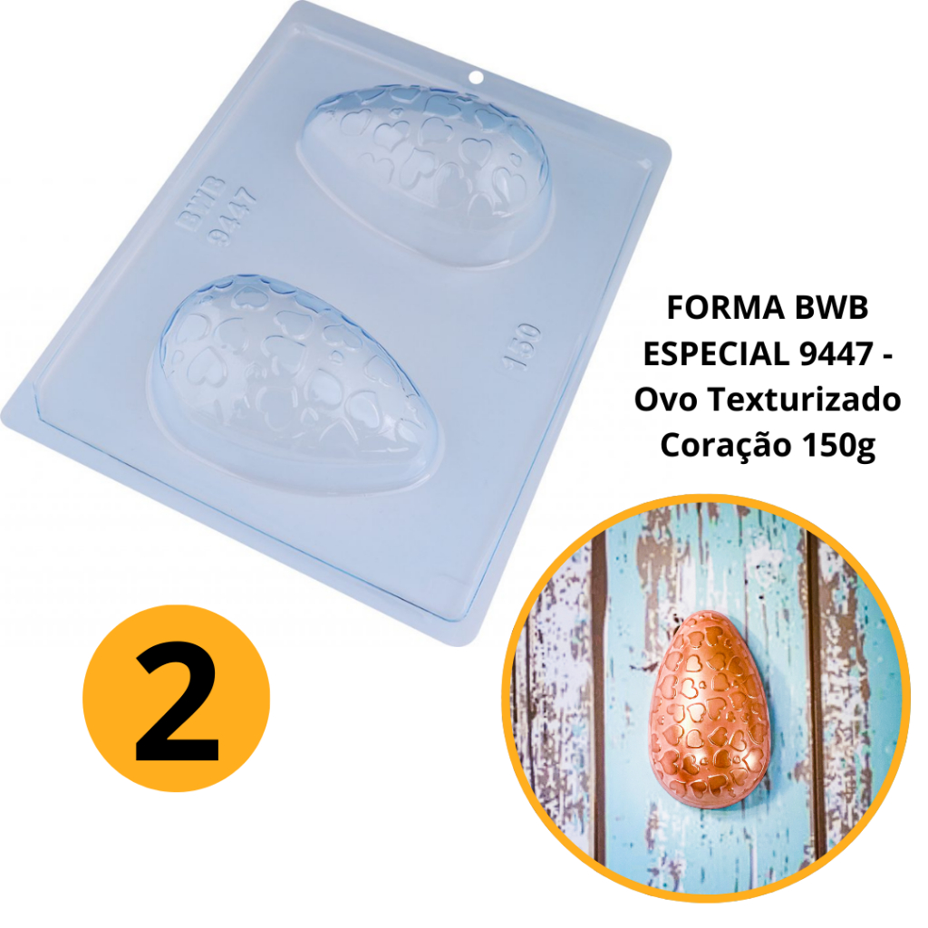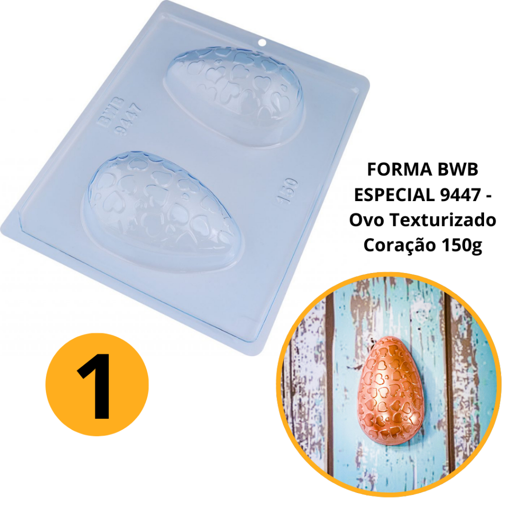 1~4 Forma BWB Com Silicone (3 partes)Para Chocolate Cód. 9447 - Ovo Texturizado Coração 150g. Páscoa