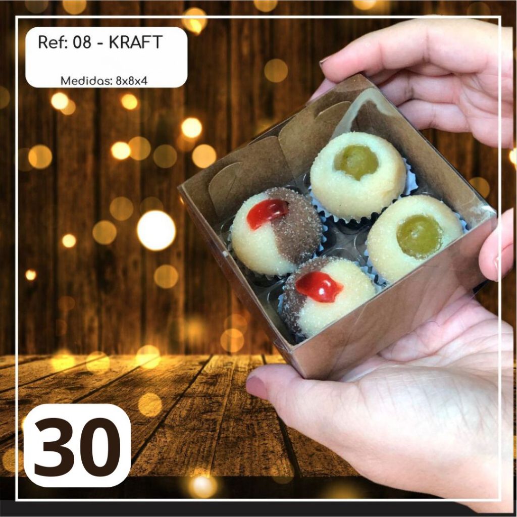 10 ~50 Caixas Embalagem 4 Doces Com Visor em Acetato KRAFT 8x8x4 - Ref. 08 ( Chocobraz )