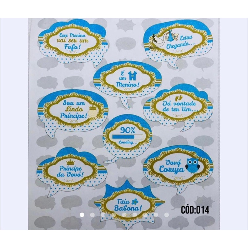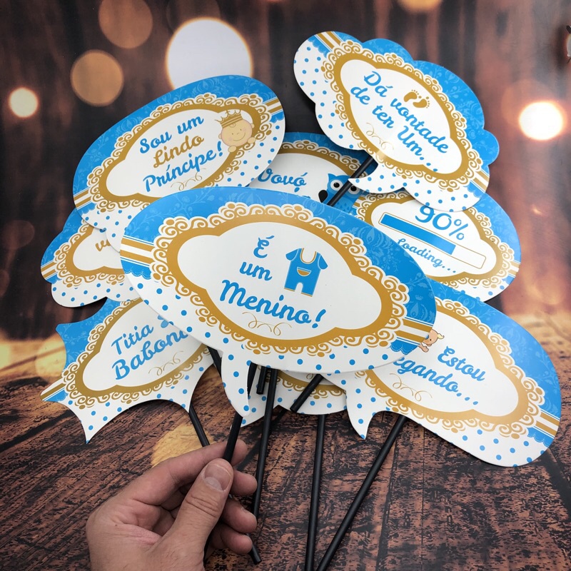 KIT 10 PLAQUINHAS DIVERTIDAS SELFIE CHÁ DE BEBÊ MENINO (COD 14)