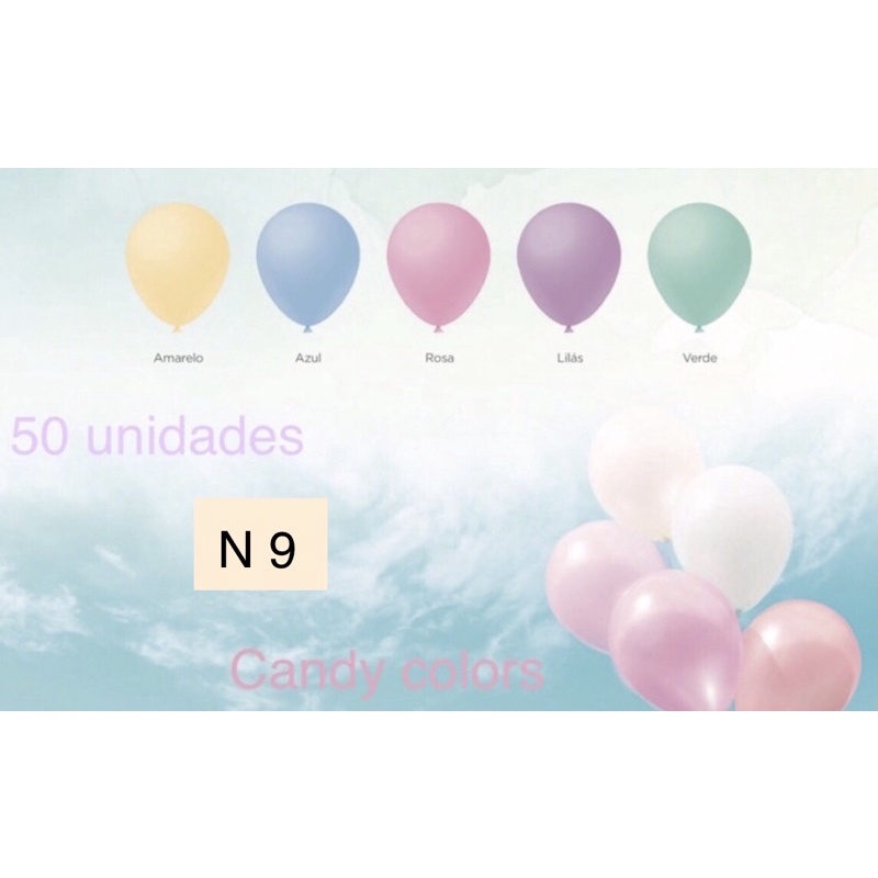 50 Unid Balão N 9 Grande Candy Colors 5 Cores Pastel Bexiga cores bebê//