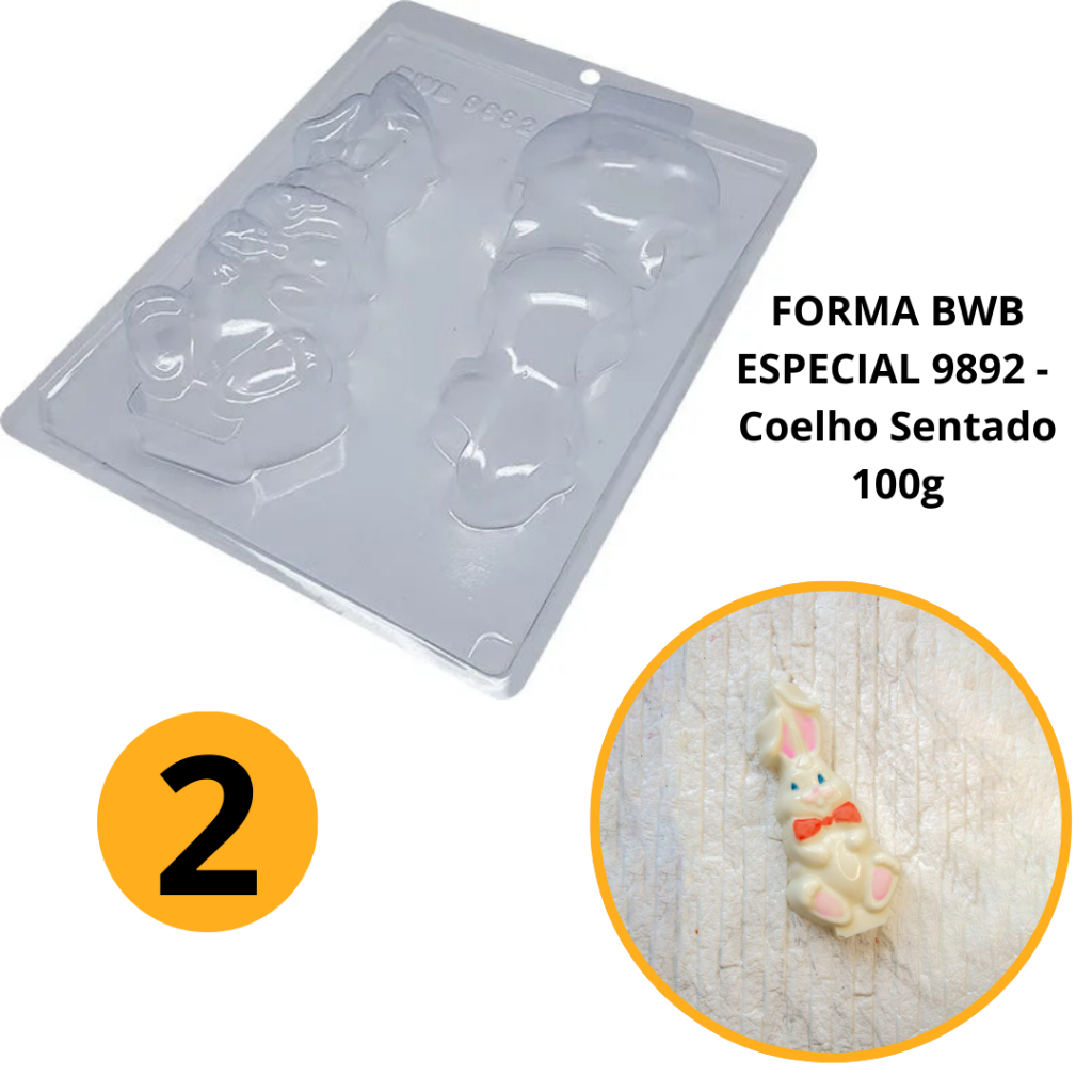 1~4 Forma BWB Com Silicone (3 partes) Para Chocolate Cód. 9892 - Coelho Sentado 100g. Páscoa