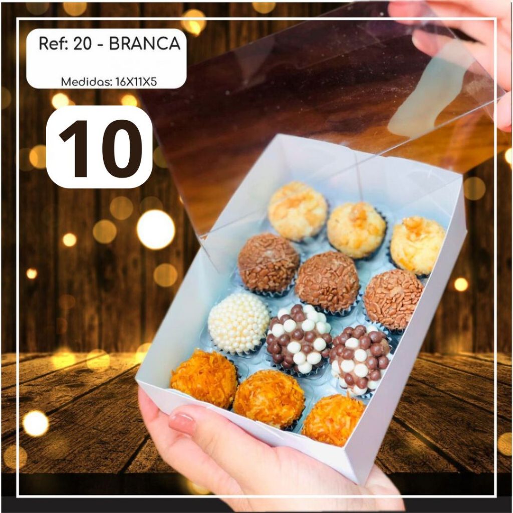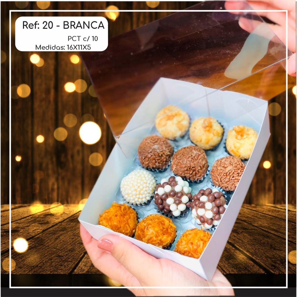 10 ~50 Caixas Embalagem Para 12 Doces Com Visor em Acetato BRANCA 16x11x5 - Ref. 20 ( Chocobraz )//