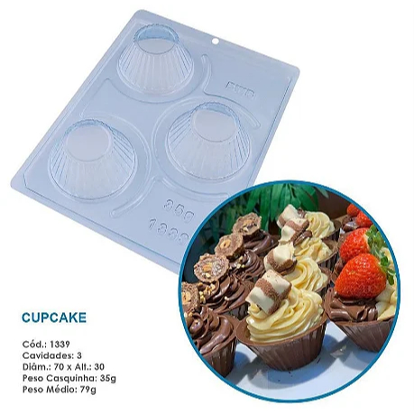 1~4 Forma silicone bwb p/chocolate (3partes) cod 1339 - Cupcake Peso : 79g (CHOCO)