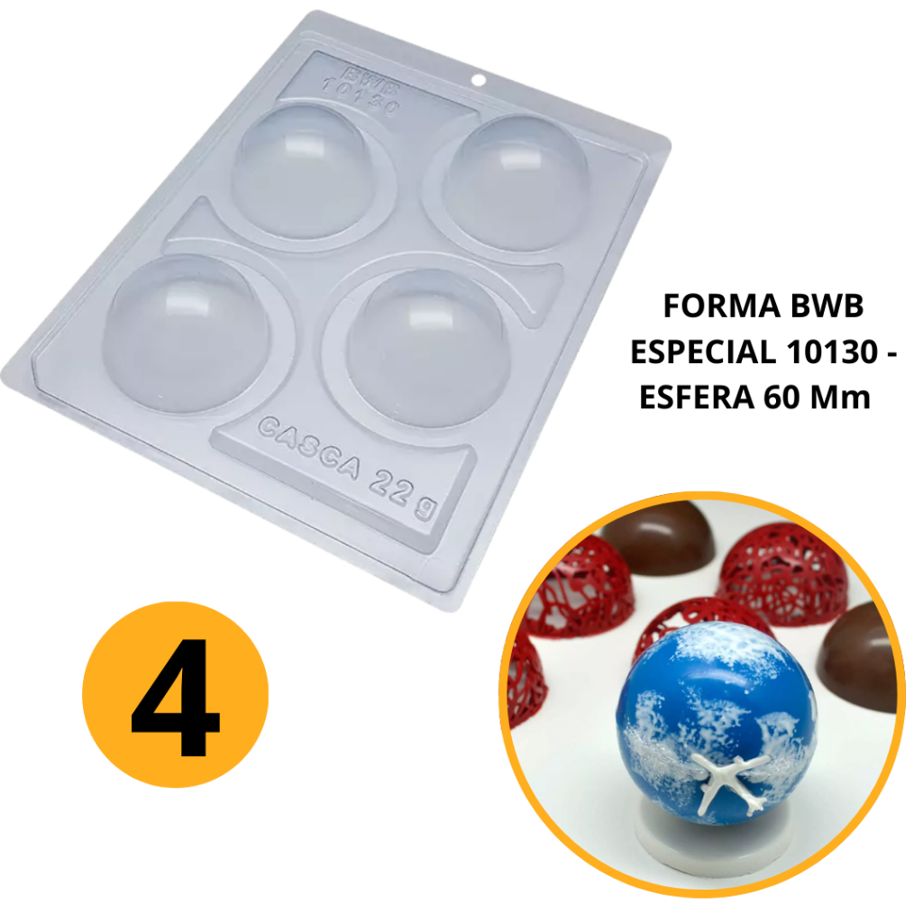 1~4 forma bwb com silicone (3 partes) 10130 - Esfera de 60mm (CHOCO)