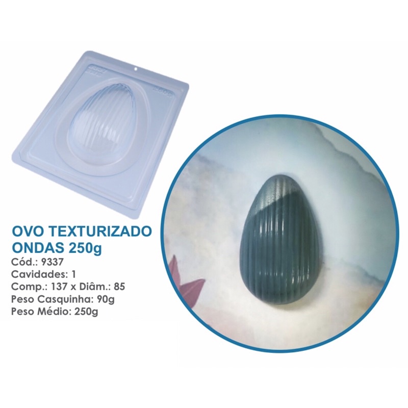 1~4 Forma BWB Com Silicone (3 partes) Para Chocolate Cód. 9337 - Ovo Texturizado Ondas 250g. Páscoa