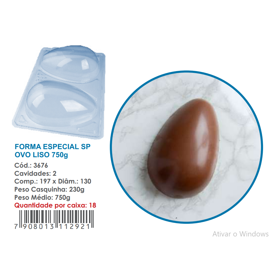 Forma BWB Com Silicone Semiprofissional, Chocolates Cód. 3676 - SP Ovo Liso 750g