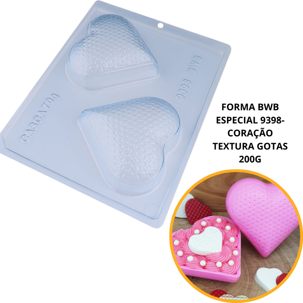 forma bwb com silicone (3 partes) cod 9398 - Coração Textura Gotas 200 g