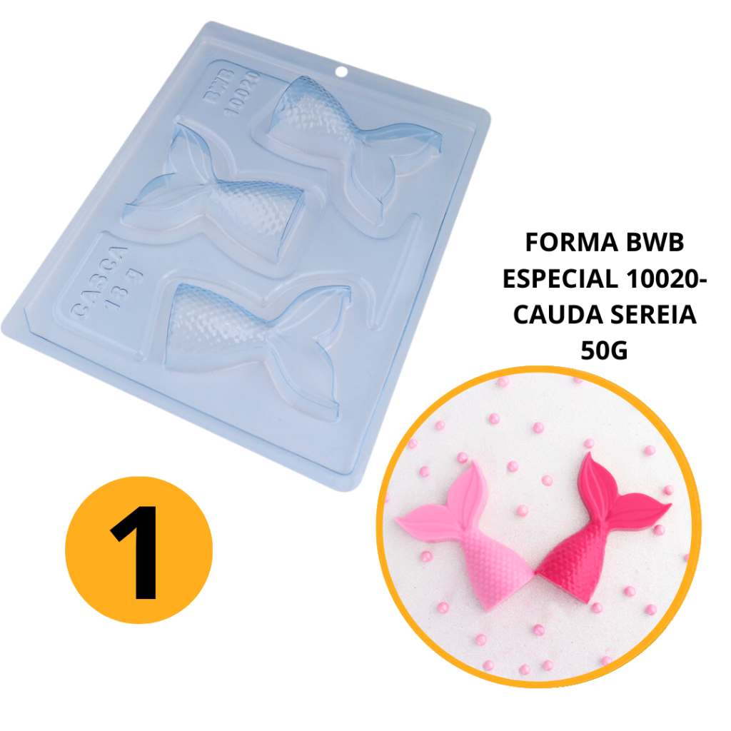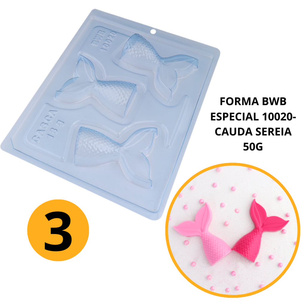 1~4 Forma BWB Com Silicone (3 partes) Para Chocolate Cód. 10020 - Cauda da Sereia 50g. (CHOCO)