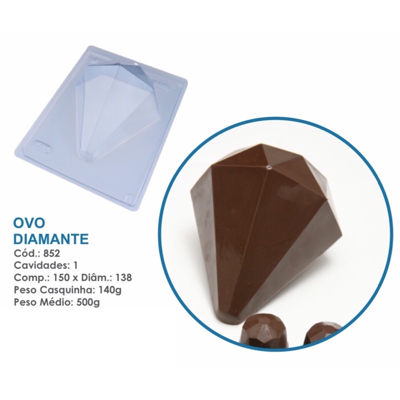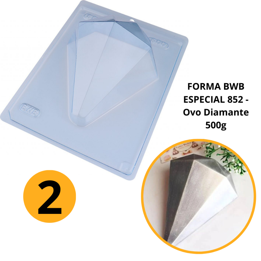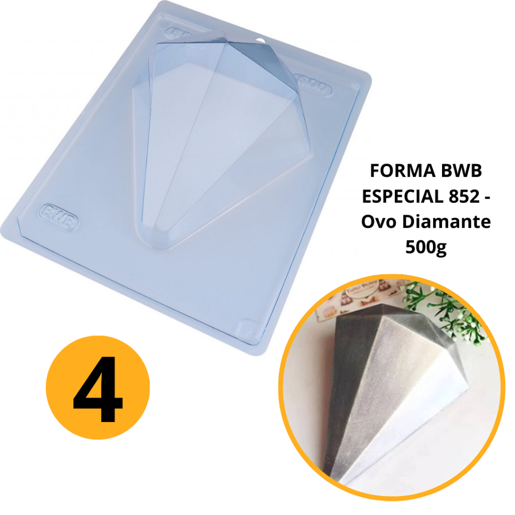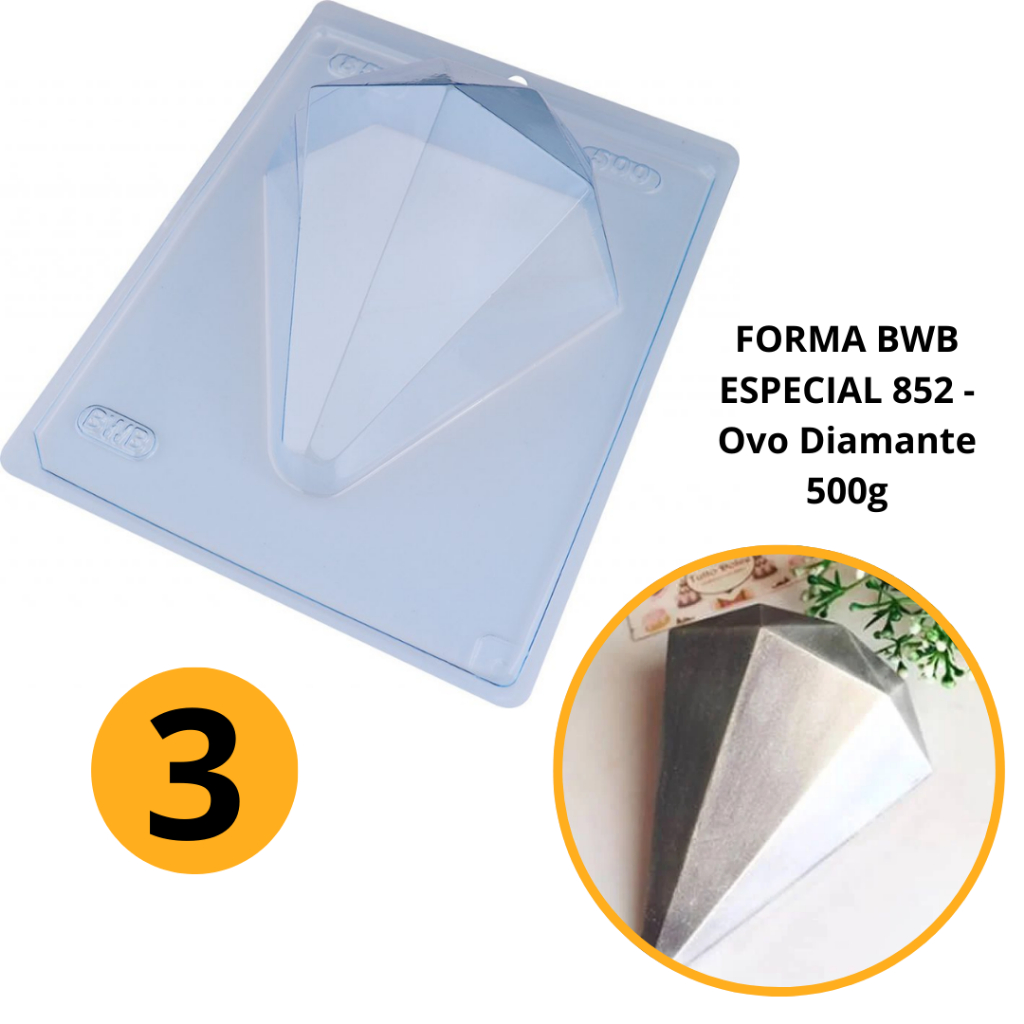1~4 Forma BWB Com Silicone (3 partes) Para Chocolate Cód. 852 - Ovo Diamante 500g. Páscoa