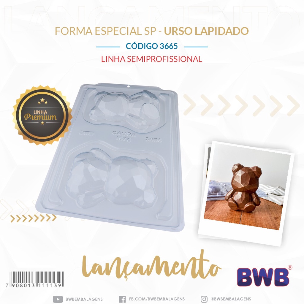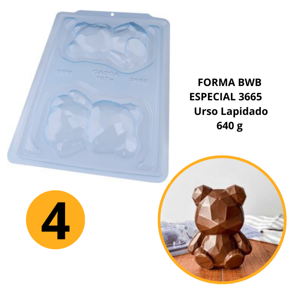 1~4 Forma BWB Urso Lapidado, Com Silicone(3 partes)Para Bombons de Chocolate E Confeitaria. Cód:3665 (CHOCO)