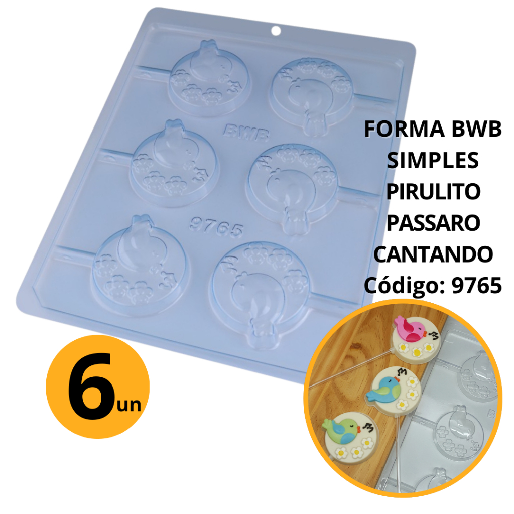 1~10 FORMA SIMPLES PIRULITO PÁSSARO CANTANDO CÓD.:9765 - D7 EM ACETATO BWB PARA BOMBOM DOCES DE CHOCOLATE E CONFEITARIA.