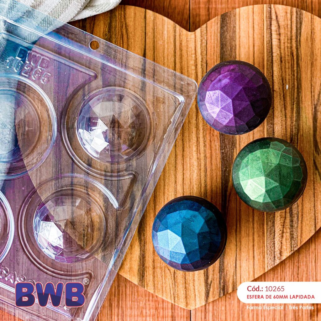 1~4 Forma BWB Esfera 60mm Lapidada,Com Silicone(3 partes)Para Bombons, Confeitaria Natal - Cód. 10265