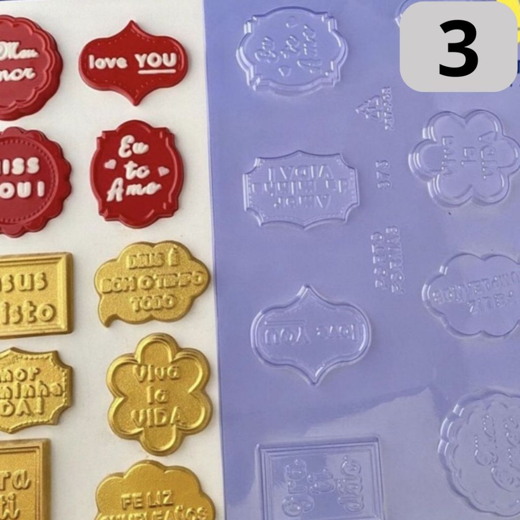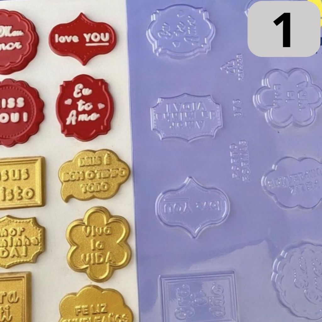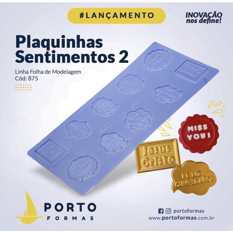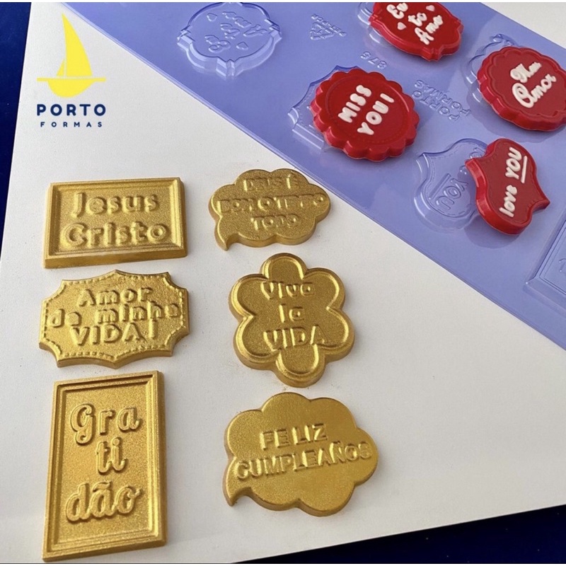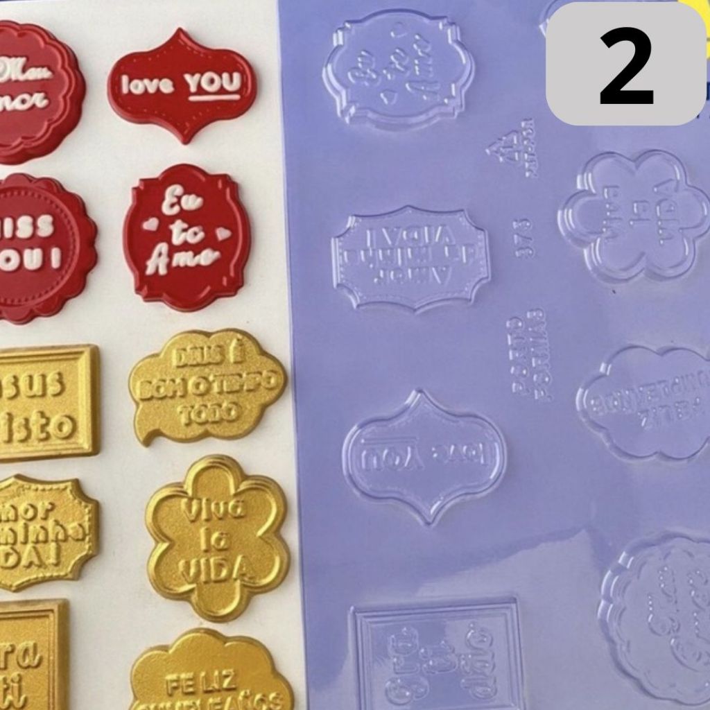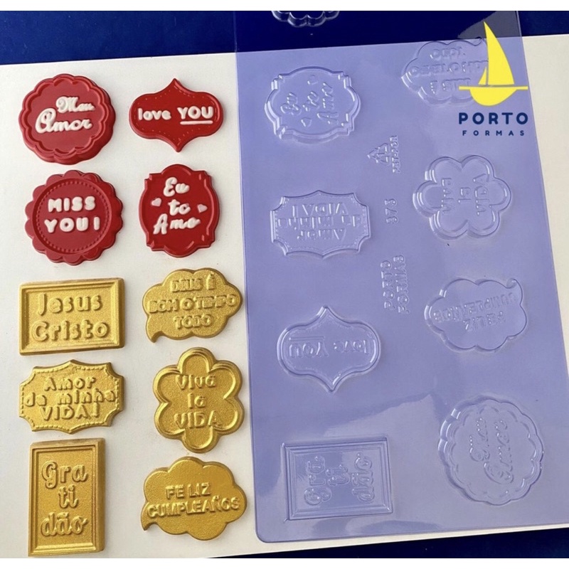1 ~ 4 PLACA FORMA P/ CHOCOLATE: 1 PLAQUINHAS SENTIMENTOS "2" - LANÇAMENTO PORTO FORMAS COD P875
