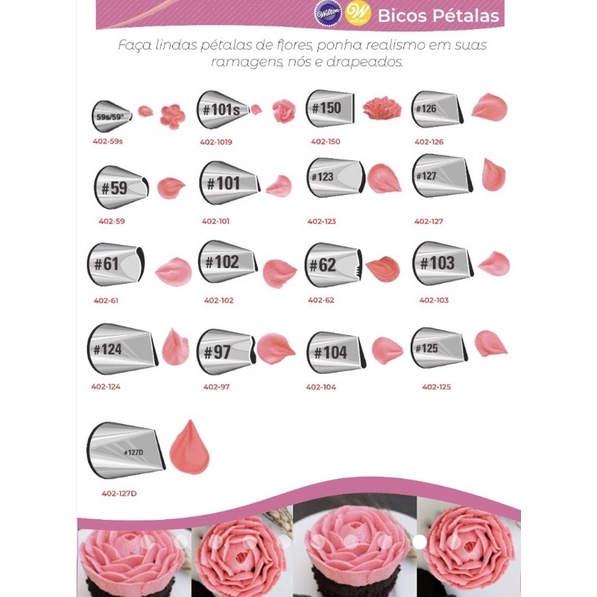 bico de confeitar Wilton Pétala original sem emendas ( linha completa Petala )//