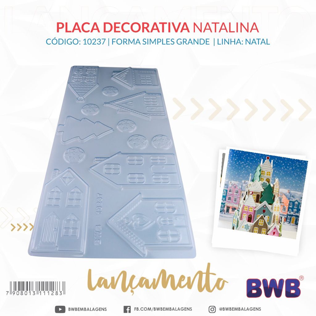 Placa Decorativa Natalina Forma BWB em Acetato Casinha Castelo de Chocolate E Confeitaria-Cód.10237