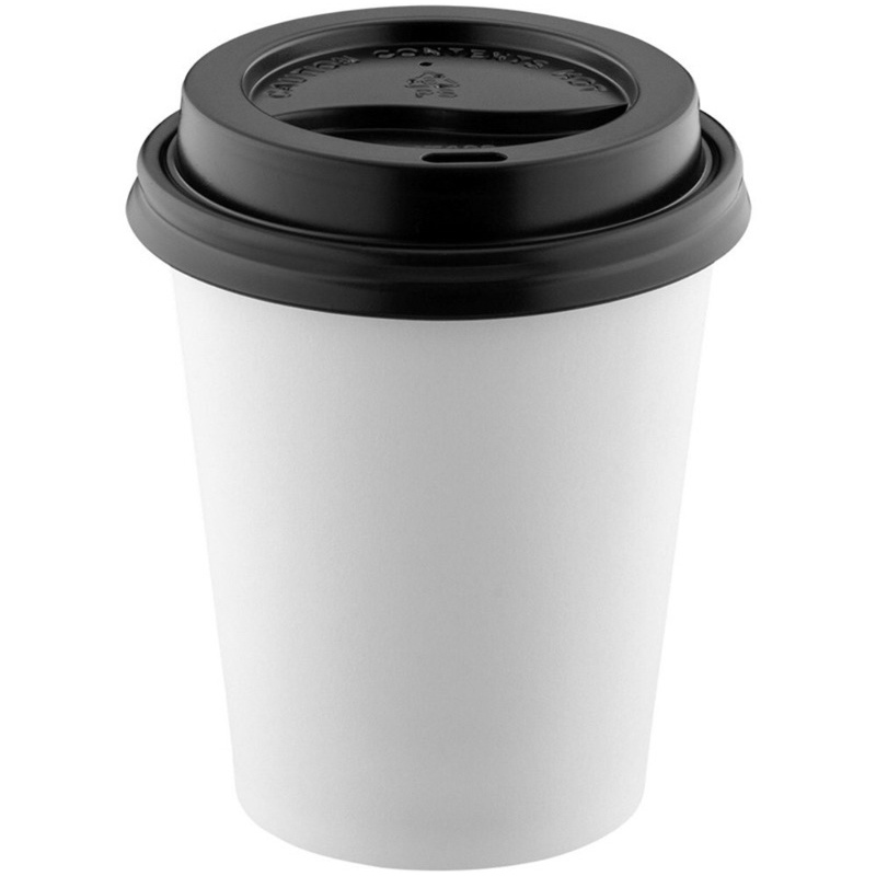 50 Copos de Papel 240 ml para Café com Tampa - bebida quente e fria branco/tampa preta...