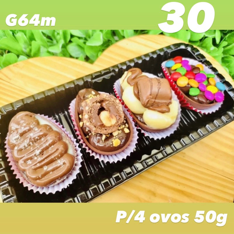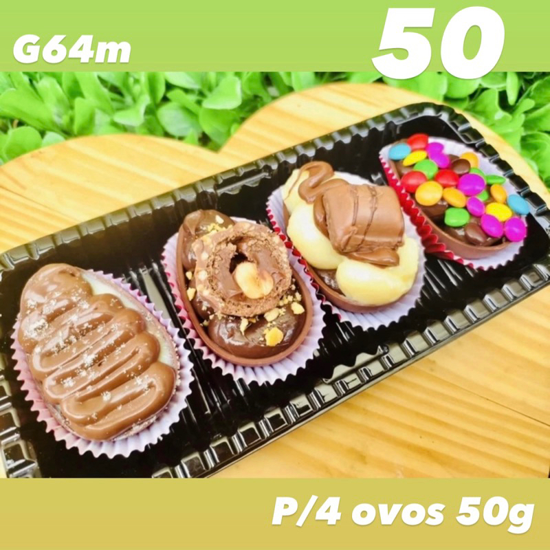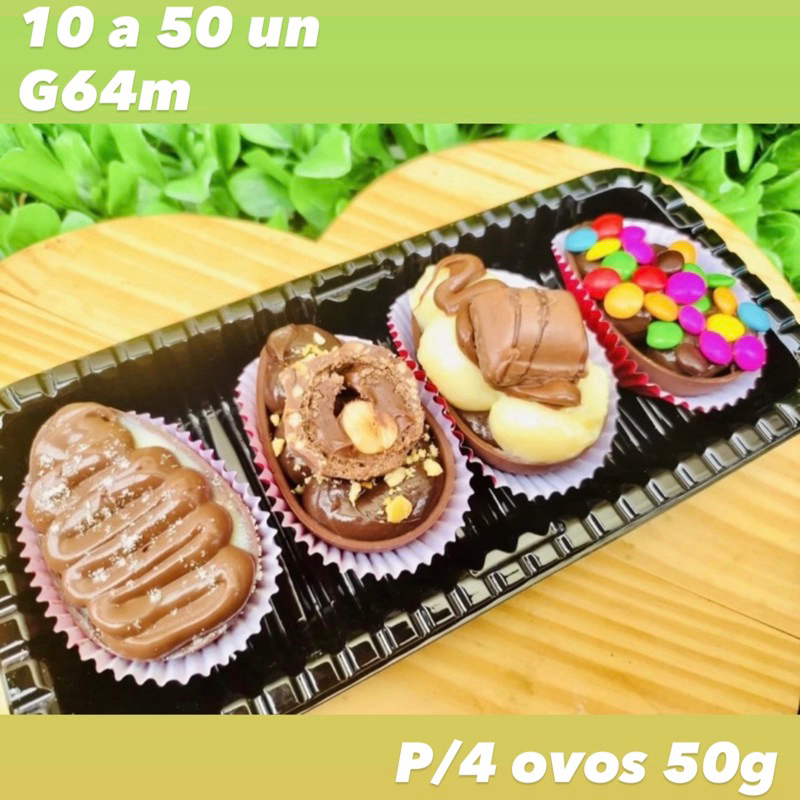KIT embalagens para 4 ovos de páscoa 50g com tampa transparente G 64M PÁSCOA 2025
