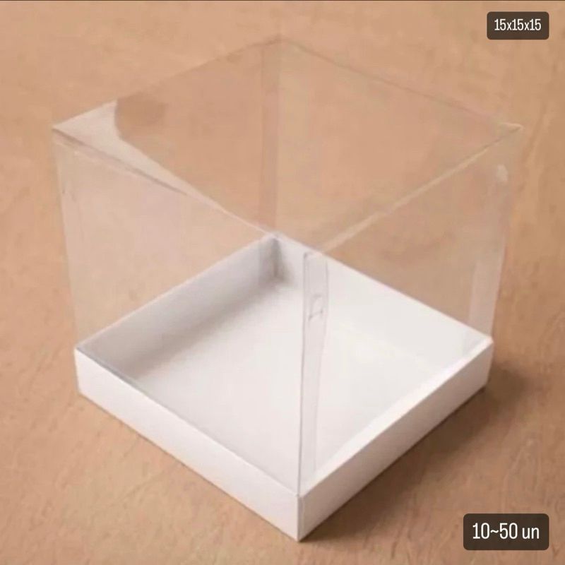 KIT 10~50 caixas panetone 15x15x15 tampa em acetato branca