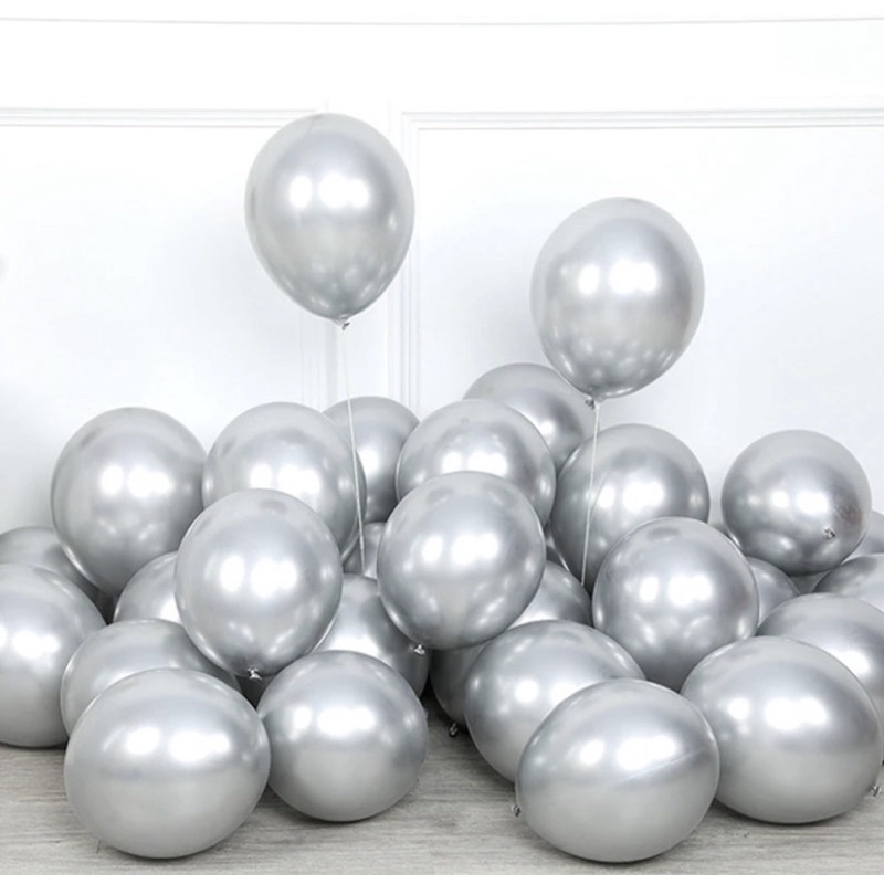 25~125 unid Balão pic pic platino cromado metalizado N°5” PRATA OFF