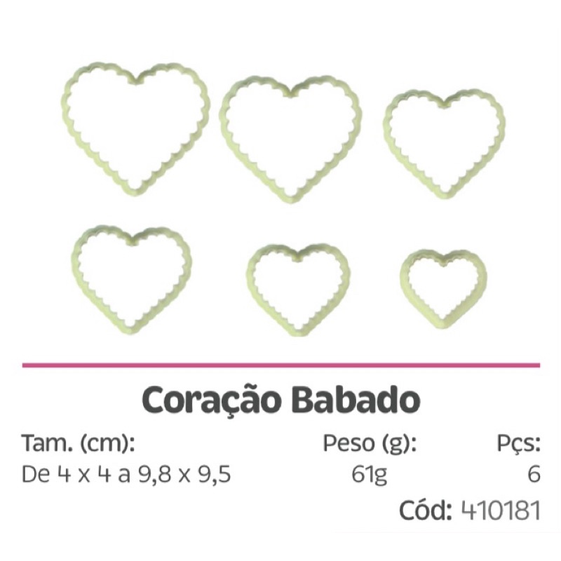 kit 6 peças cortador coração babado Blue star cod 410181 cortadores para confeitaria