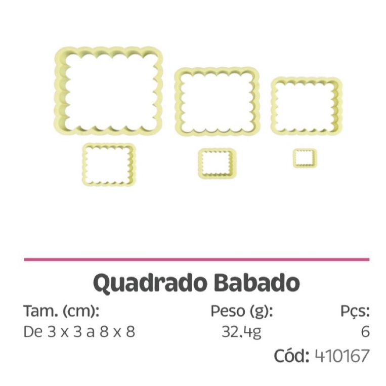 kit 6 peças cortador quadrado babado Blue star cod 410167 cortadores para confeitaria