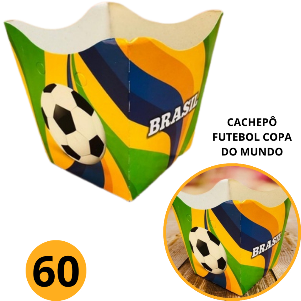 10~60 KIT CACHEPÔ DECORATIVO PAPEL FESTA FLORES DECORAÇÃO TEMA FUTEBOL COPA DO MUNDO BRASIL GOL 66.1