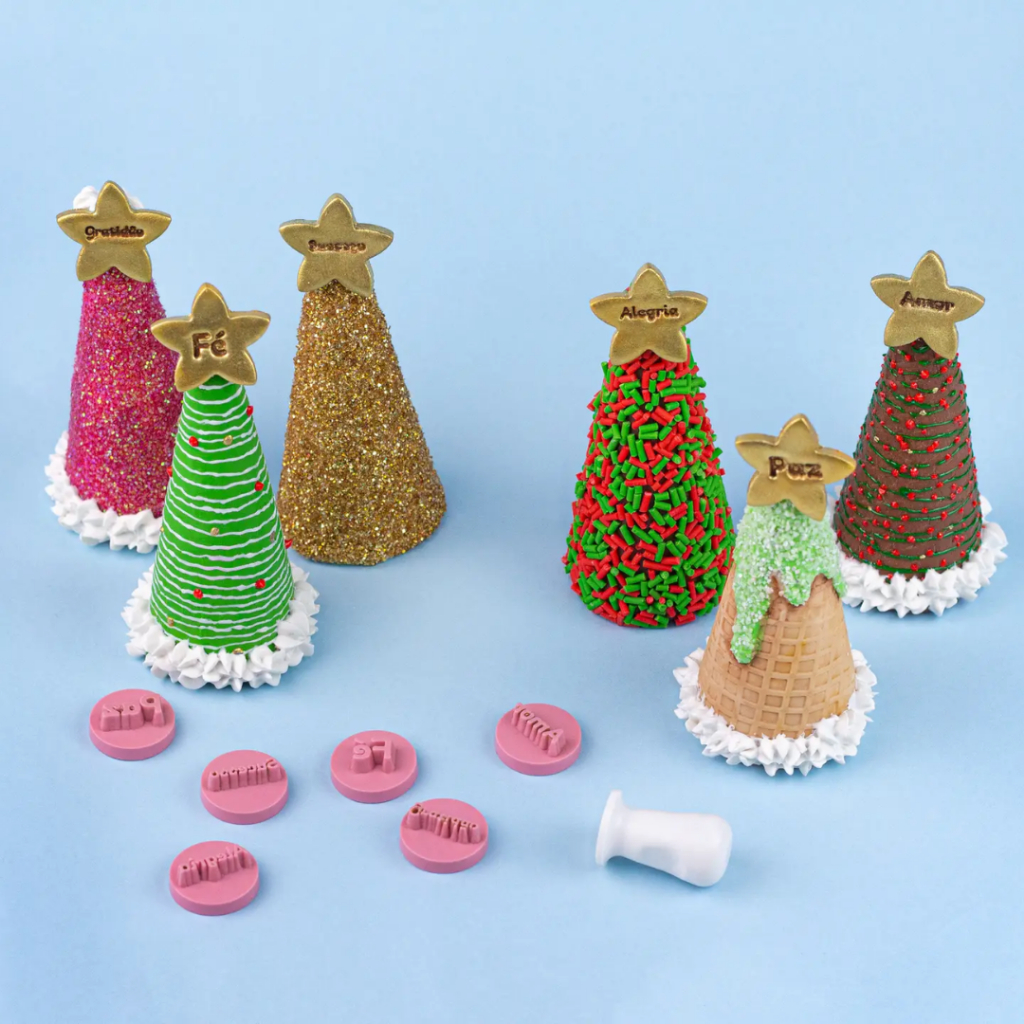 kit carimbo ROSA DESEJOS pequeno para brigadeiros doces e confeitaria Blue star....