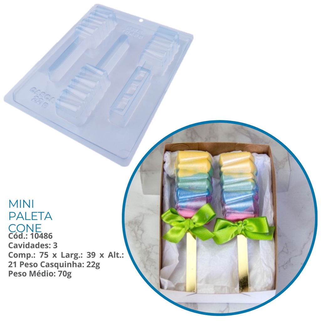 1~4 Forma bwb MINI PALETA CONE 70G especial com silicone 3 partes para chocolate Cód. 10486 (CHOCO)
