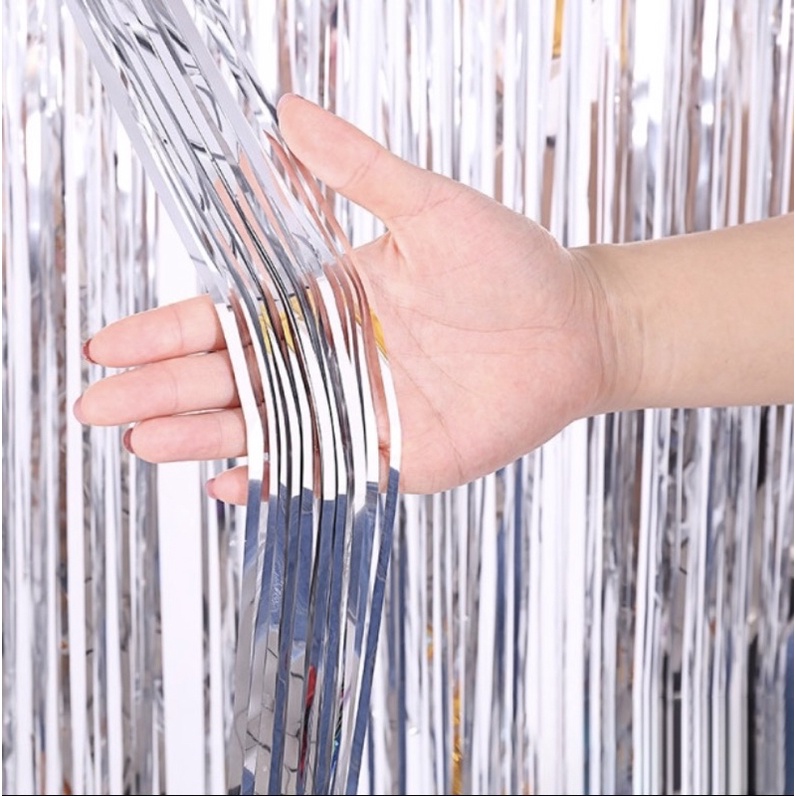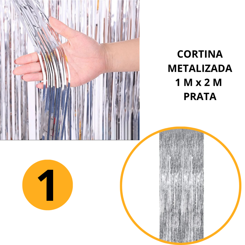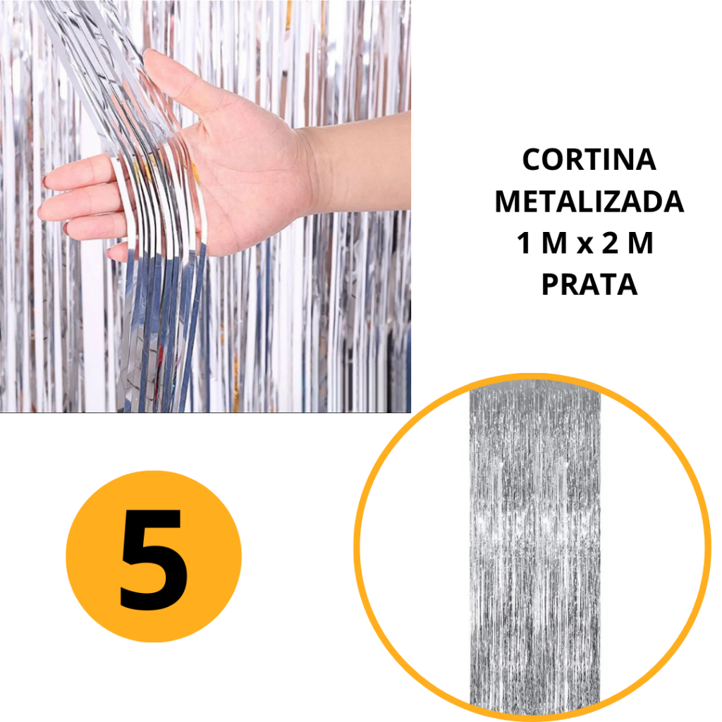KIT 1~5 Cortina Metalizado para Festa 1mx2m painel decoração fita metaliza prata 30%OFF