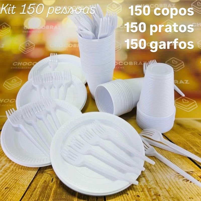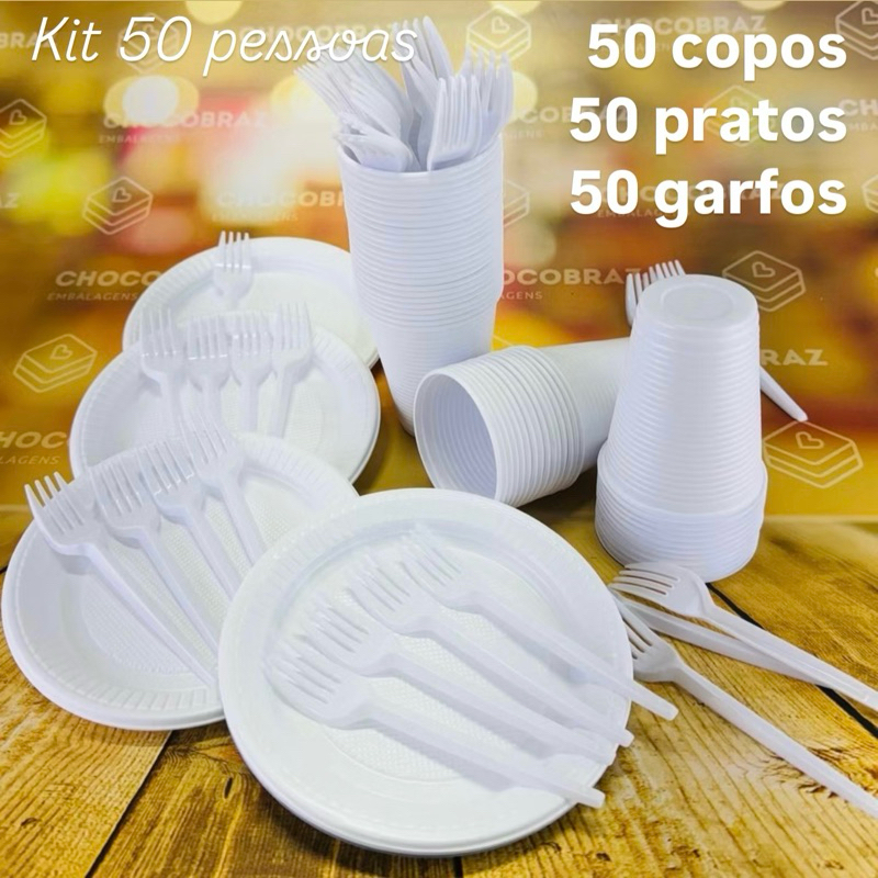 50~200 KIT DESCARTÁVEIS PARA FESTA ECONÔMICO BRANCO GARFO PRATO E COPO DESCARTÁVEL KIT 50~200 PESSOAS