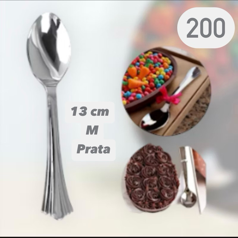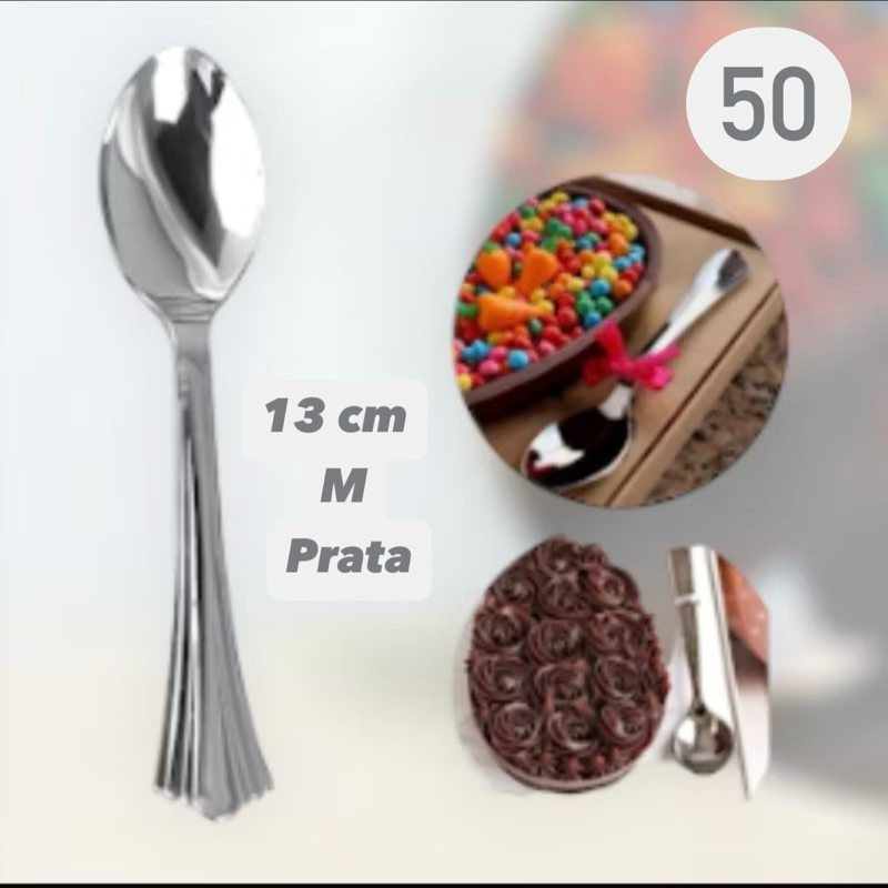 50~200 Colheres Ovo de Pascoa Sobremesa Descartaveis Luxo 13cm PRATA
